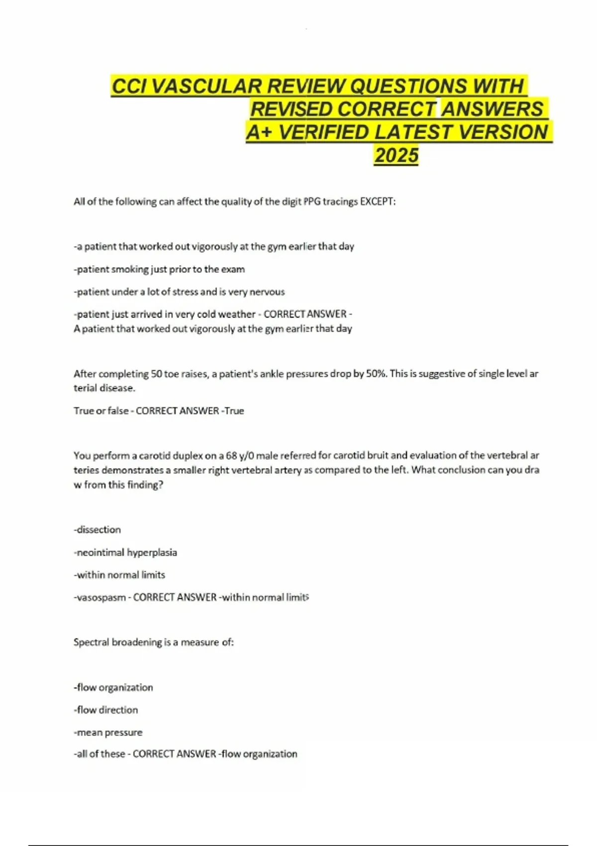 CCI VASCULAR REVIEW QUESTIONS WITH REVISED CORRECT ANSWERS A+ VERIFIED LATEST VERSION 2025