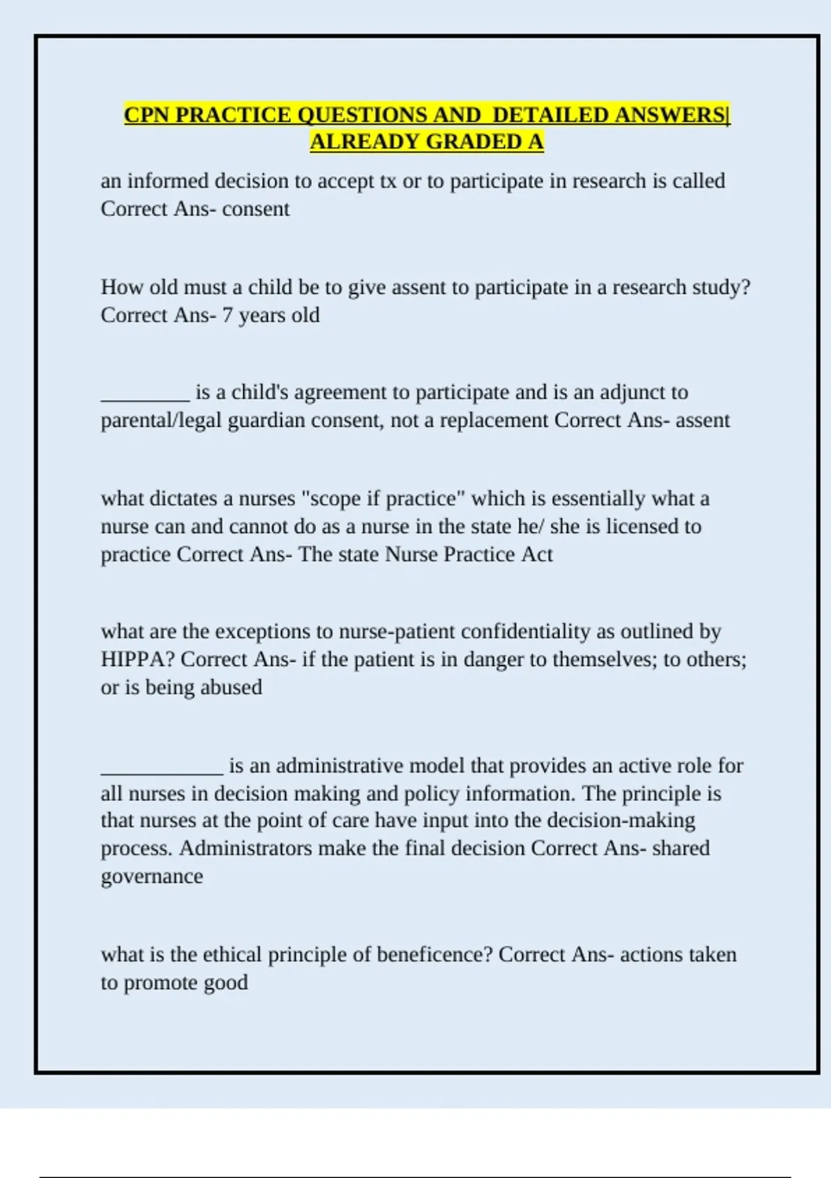 CPN PRACTICE QUESTIONS AND DETAILED ANSWERS|