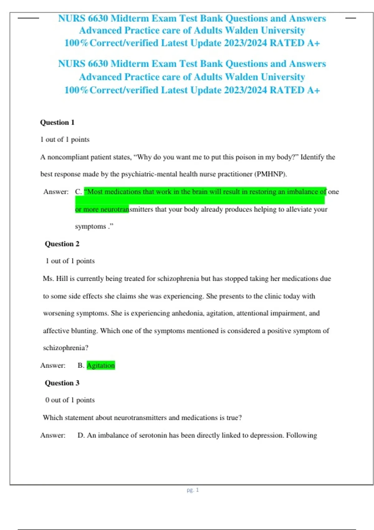 , NURS 6630 Midterm Exam Test Bank Questions and Answers