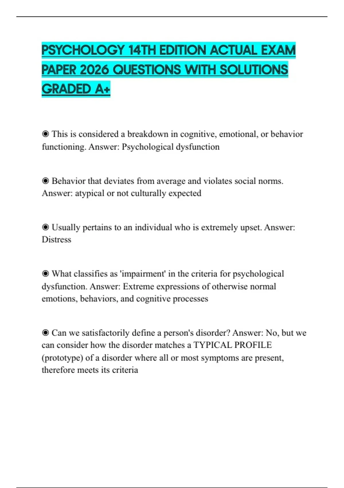 functioning. Answer: Psychological dysfunction
