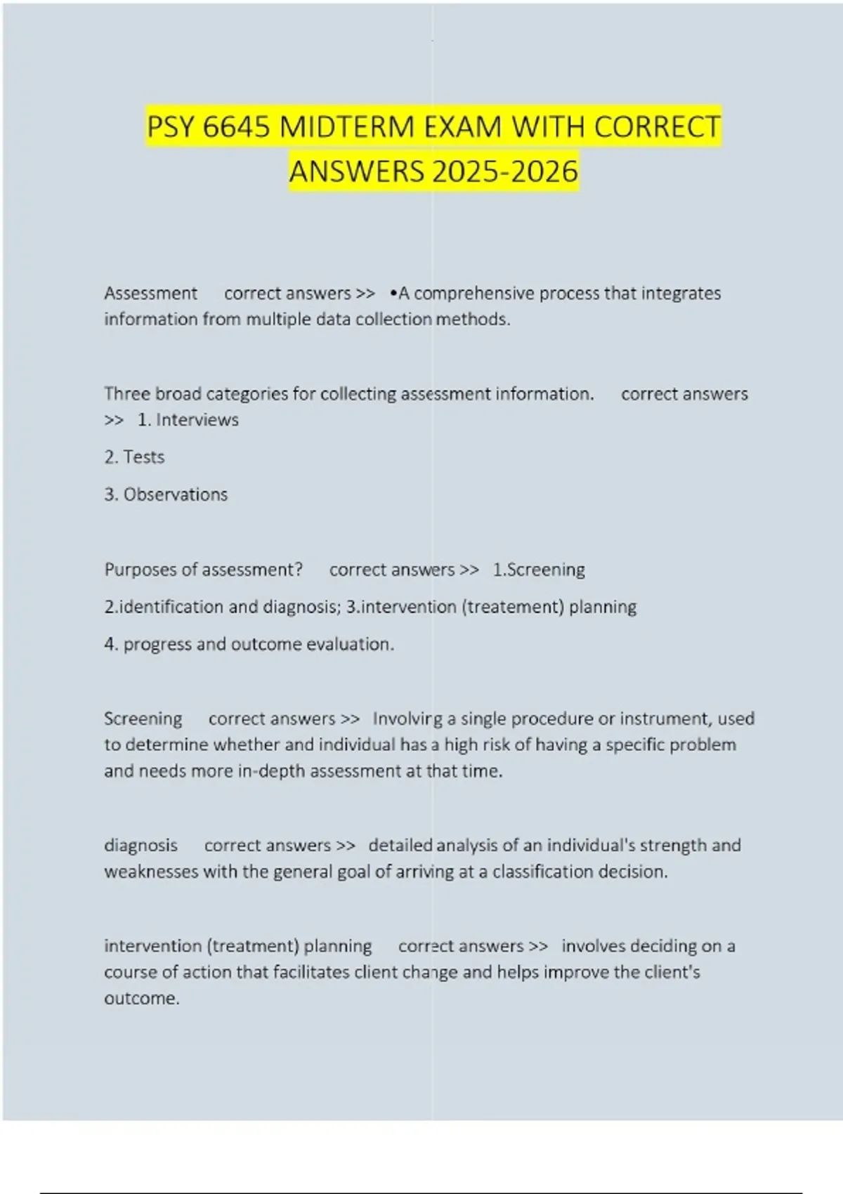 PSY 6645 MIDTERM EXAM WITH CORRECT ANSWERS