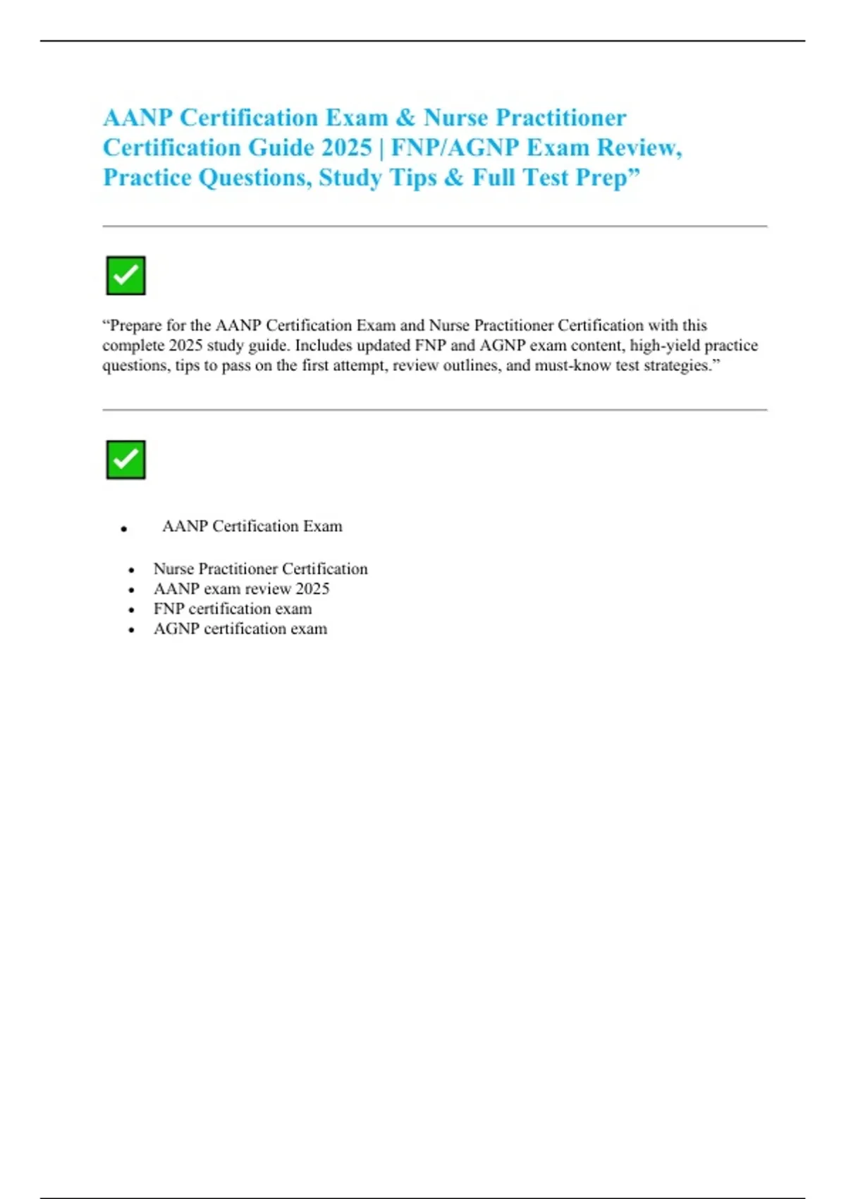 AANP Certification Exam & Nurse Practitioner Certification Guide 2025 | FNP/AGNP Exam Review, Practice Questions, Study Tips & Full Test Prep”