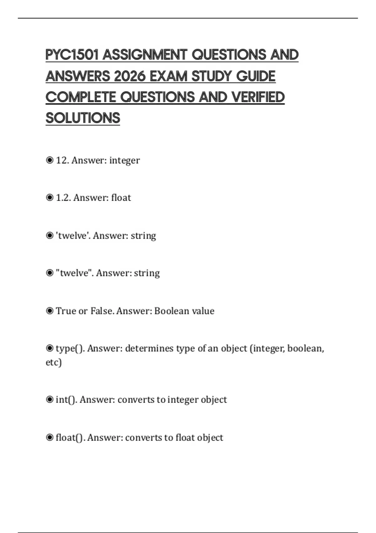 COMPLETE QUESTIONS AND VERIFIED
