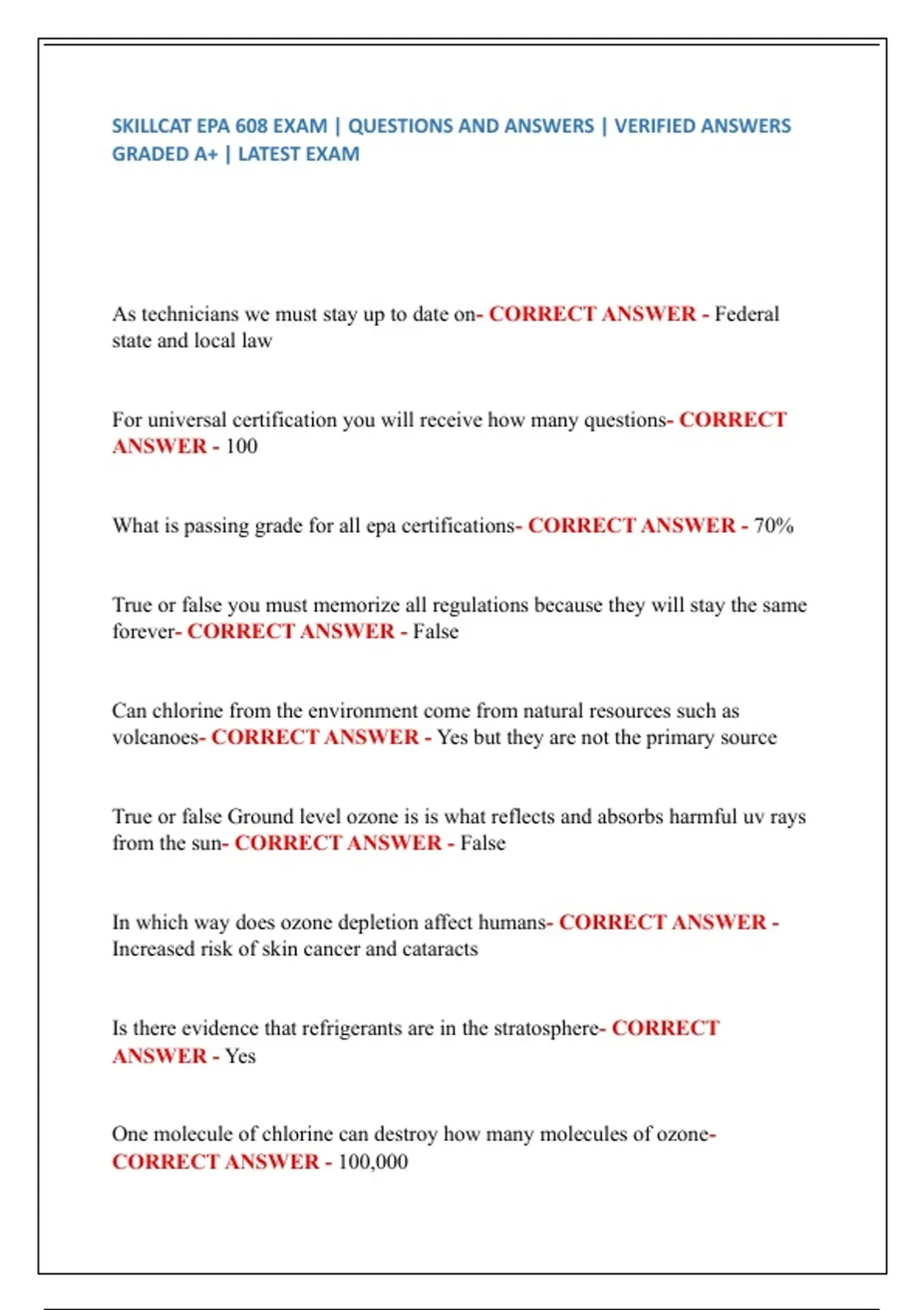 SKILLCAT EPA 608 EXAM | QUESTIONS AND ANSWERS | VERIFIED ANSWERS GRADED A+ | LATEST EXAM