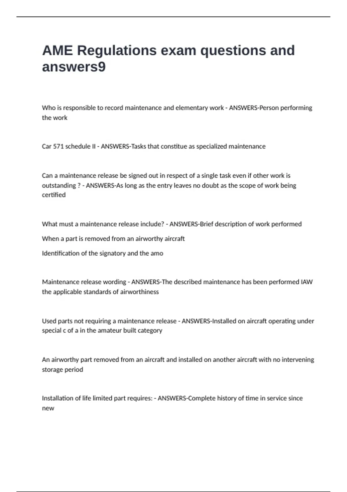 AME Regulations exam questions and