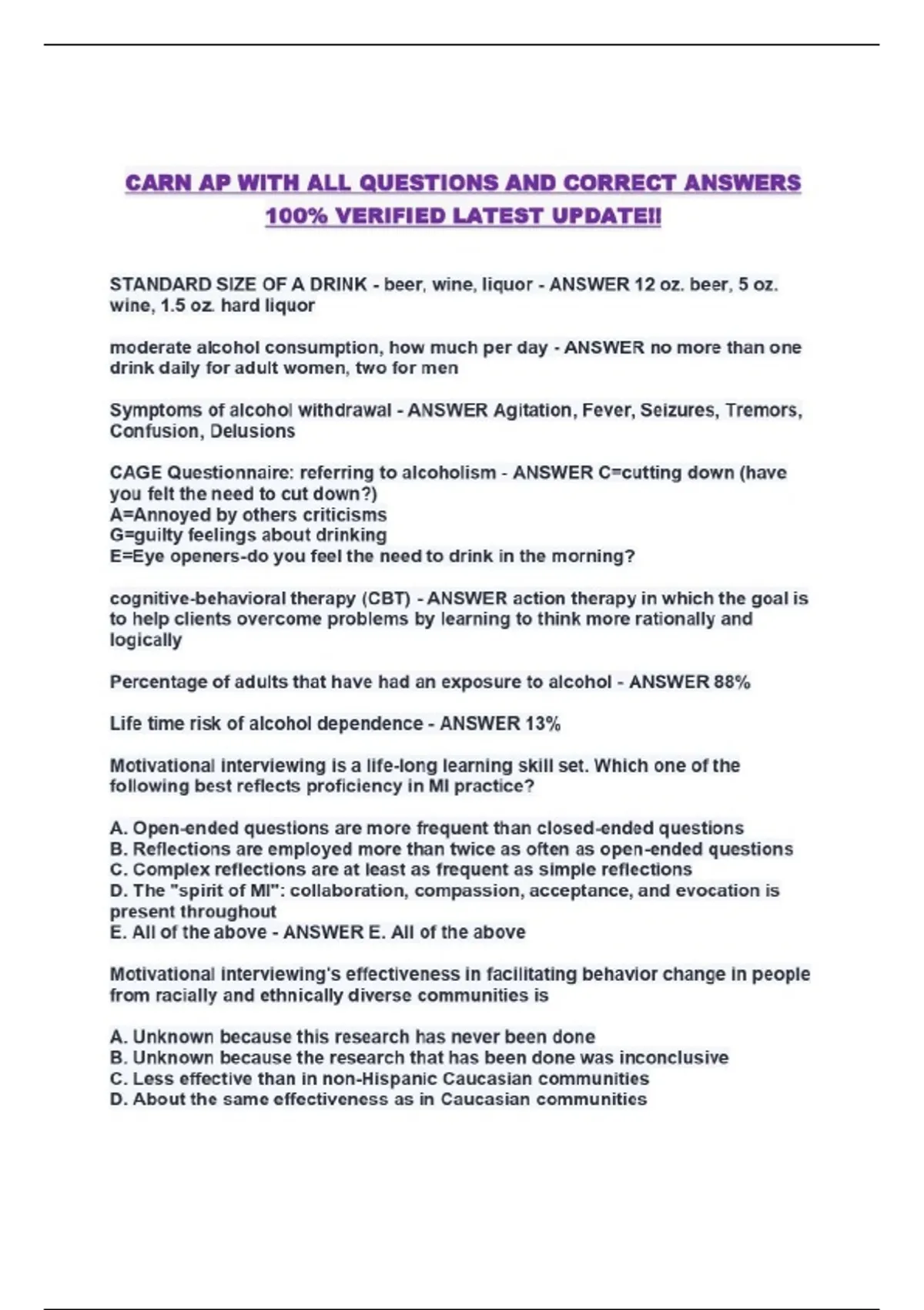 CARN AP WITH ALL QUESTIONS AND CORRECT ANSWERS 100% VERIFIED LATEST UPDATE!!...