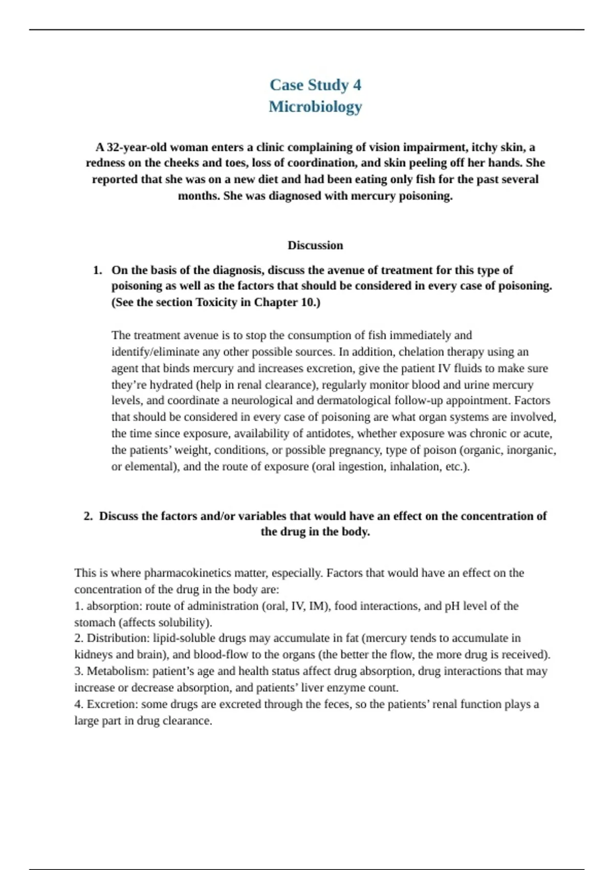 2. Distribution: lipid-soluble drugs may accumulate in fat (mercury tends to accumulate in