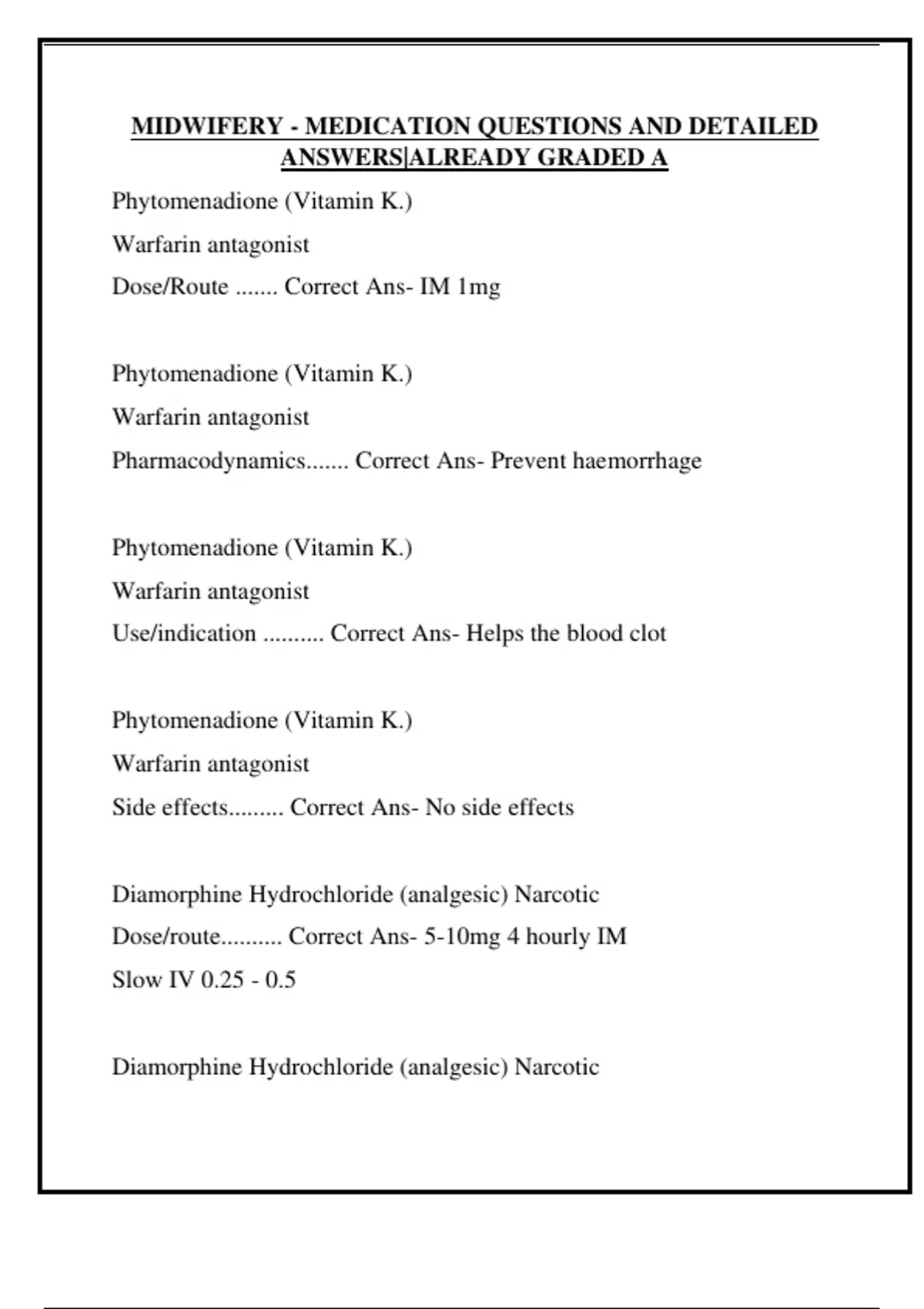 MIDWIFERY - MEDICATION QUESTIONS AND DETAILED ANSWERS|ALREADY GRADED A