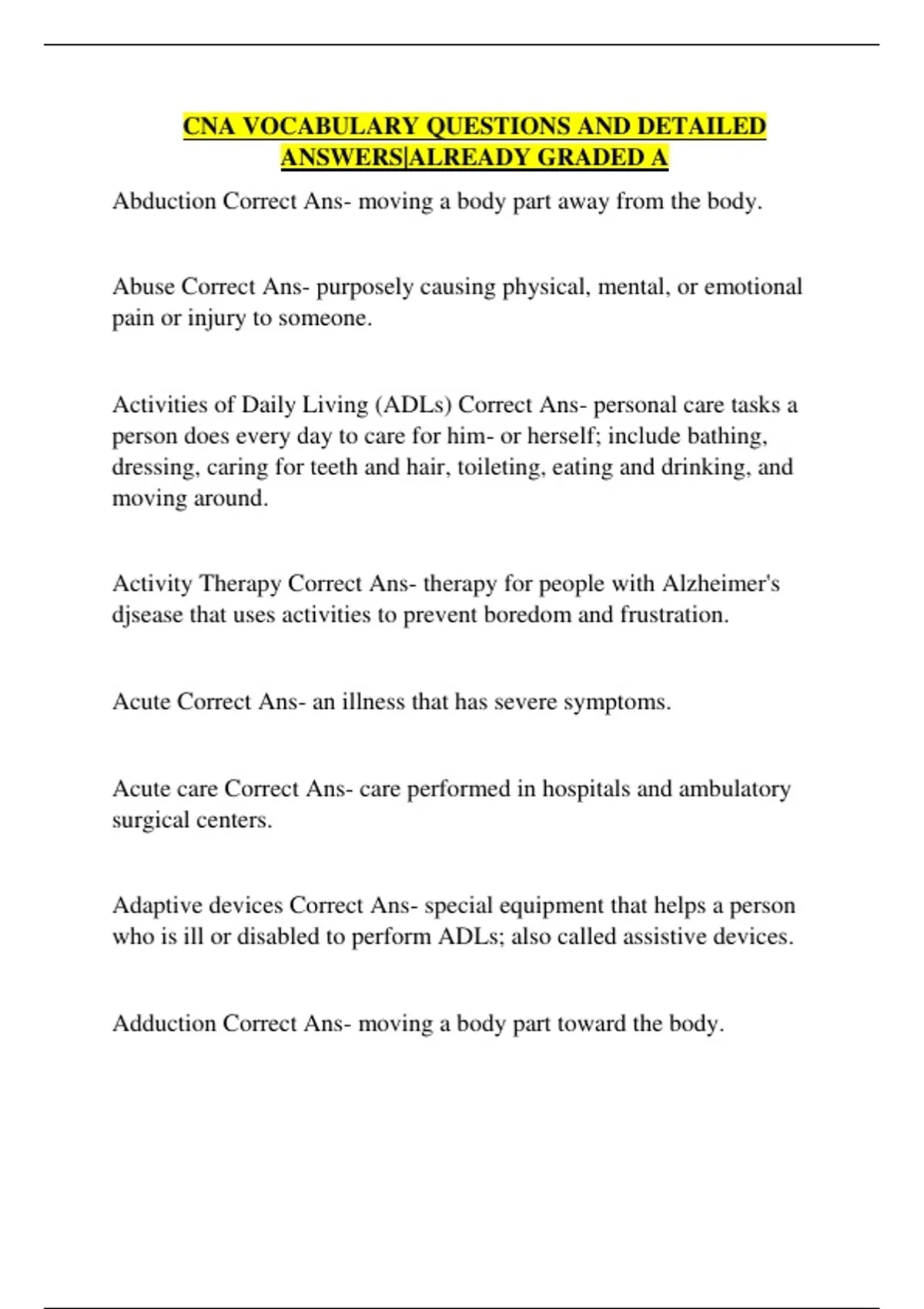 Abduction Correct Ans- moving a body part away from the body.