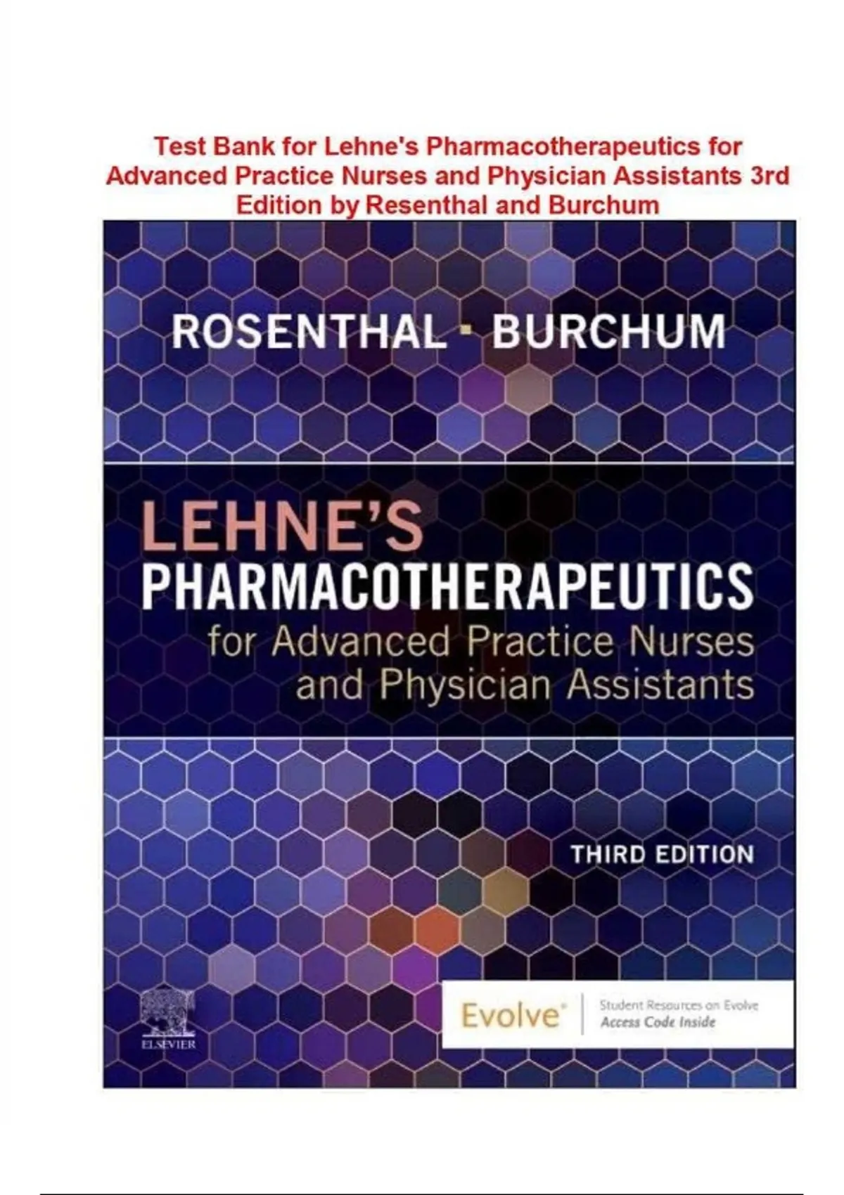 Test Bank for Lehne’s Pharmacotherapeutics for Advanced Practice Nurses and Physician Assistants, 3rd Edition by Rosenthal & Burchum | Verified Questions & Answers