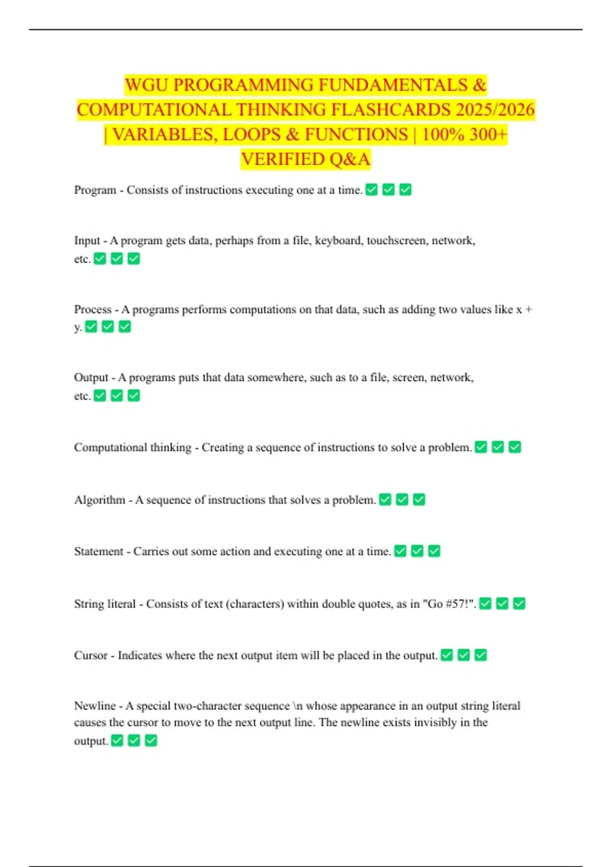 WGU PROGRAMMING FUNDAMENTALS & COMPUTATIONAL THINKING FLASHCARDS 2025/2026 | VARIABLES, LOOPS & FUNCTIONS | 100% VERIFIED Q&A