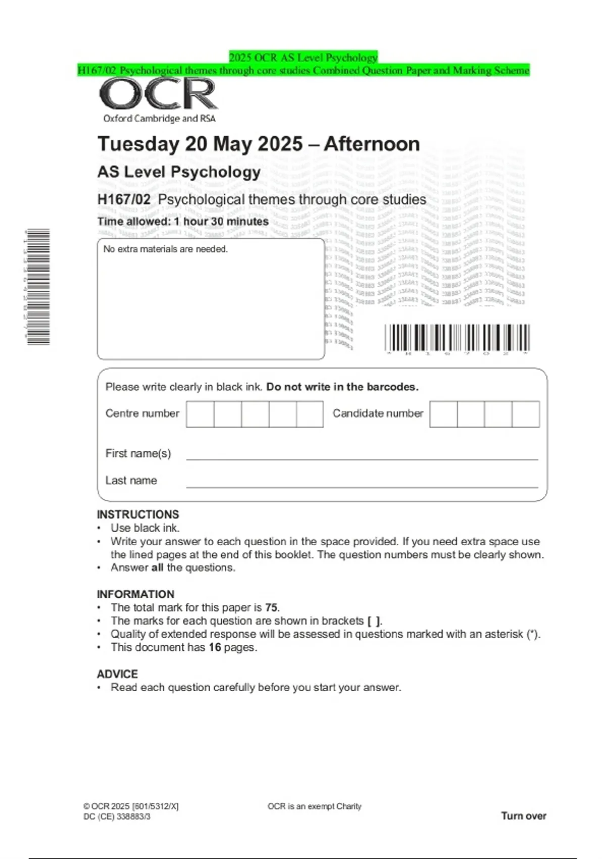 2025 ocr as level psychology h16702