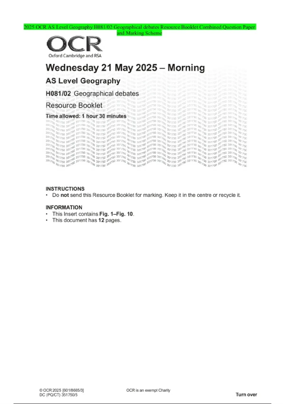 2025 OCR AS Level Geography H081/02 Geographical debates Resource Booklet Combined Question Paper and Marking Scheme