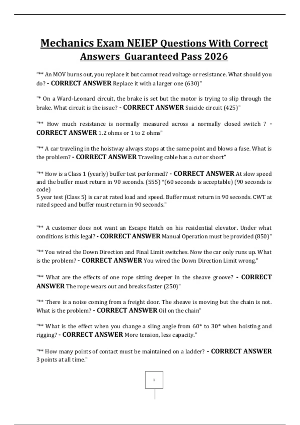 "** What do you do before running a Hydro elevator after the car is built? - CORRECT