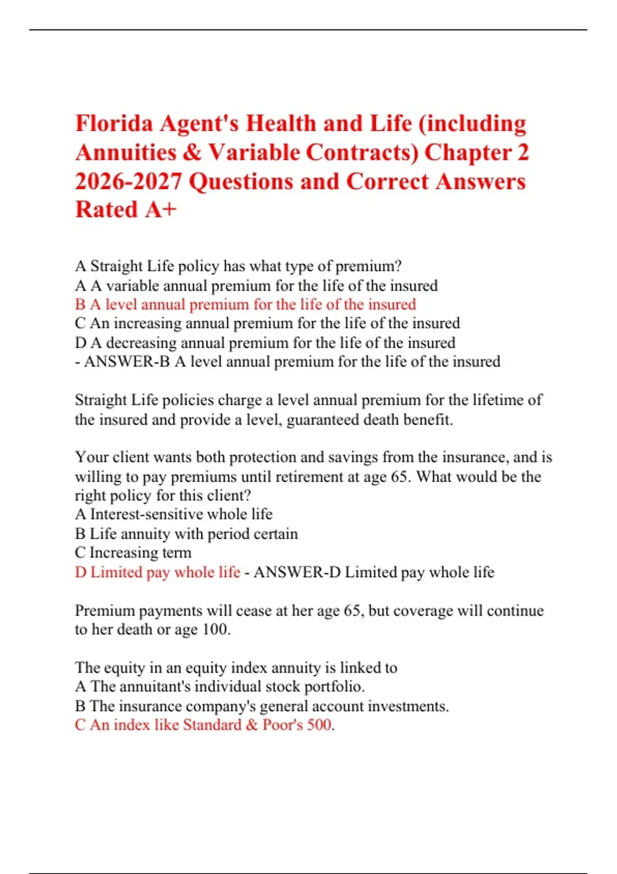 D The policy premiums will remain level for 20 years. - ANSWER-C At