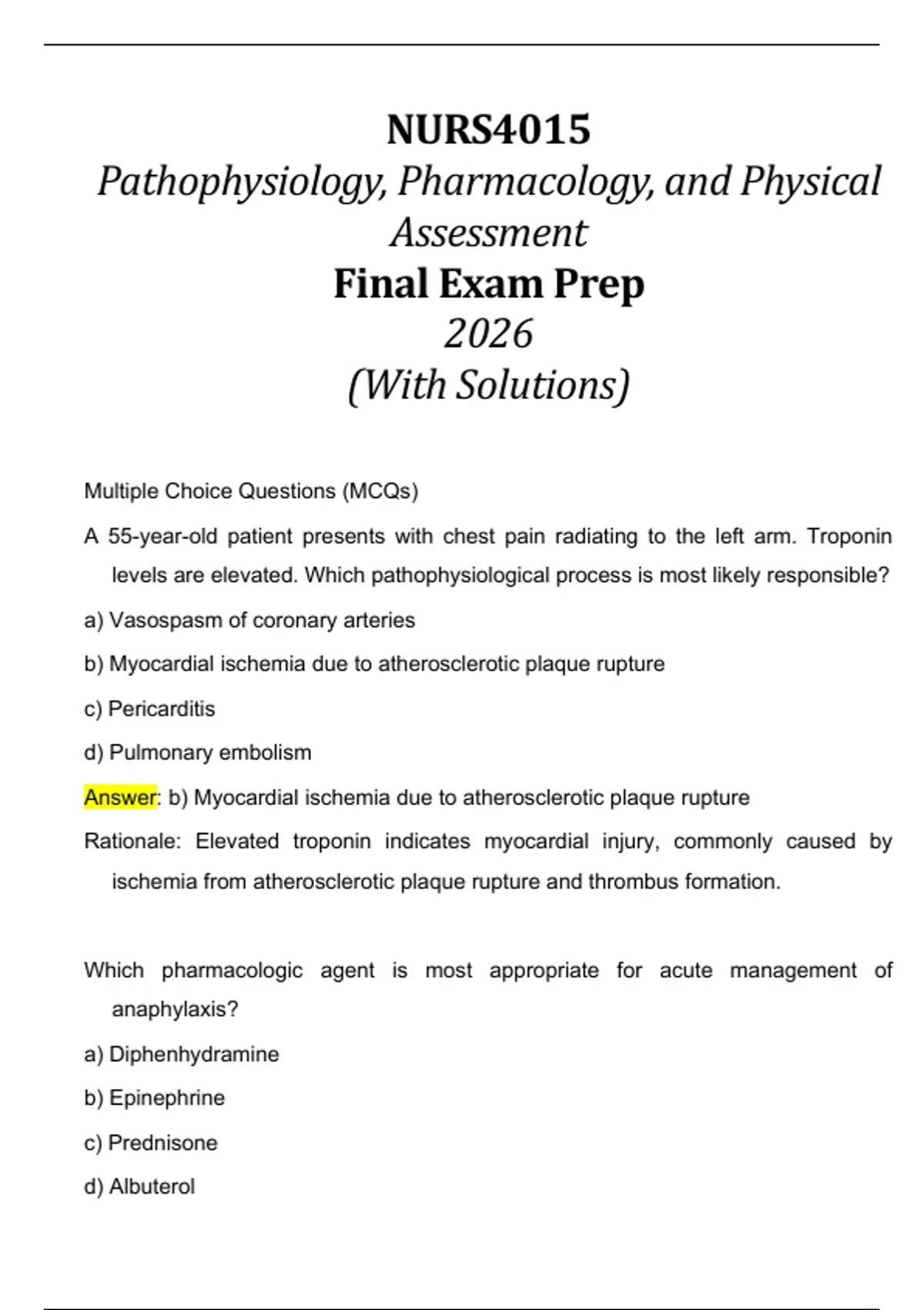 Rationale: Elevated troponin indicates myocardial injury, commonly caused by