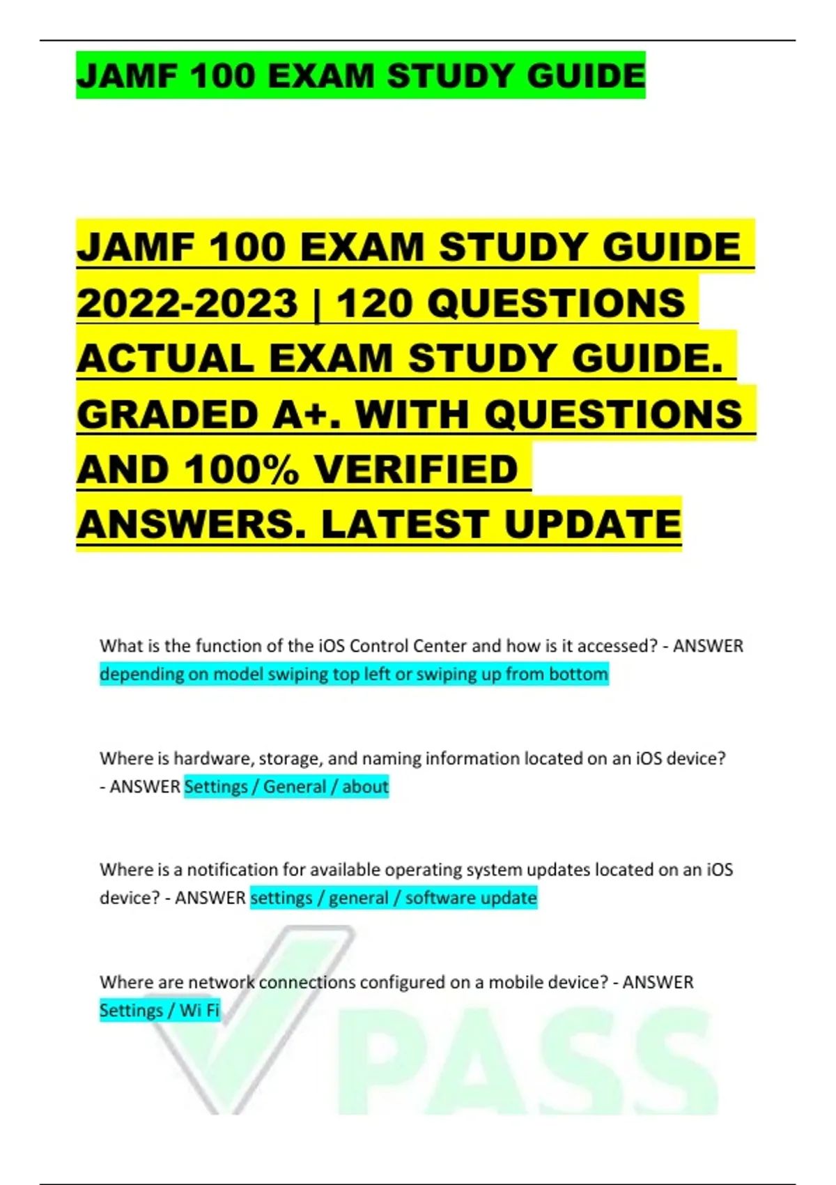 , JAMF 100 EXAM STUDY GUIDE
