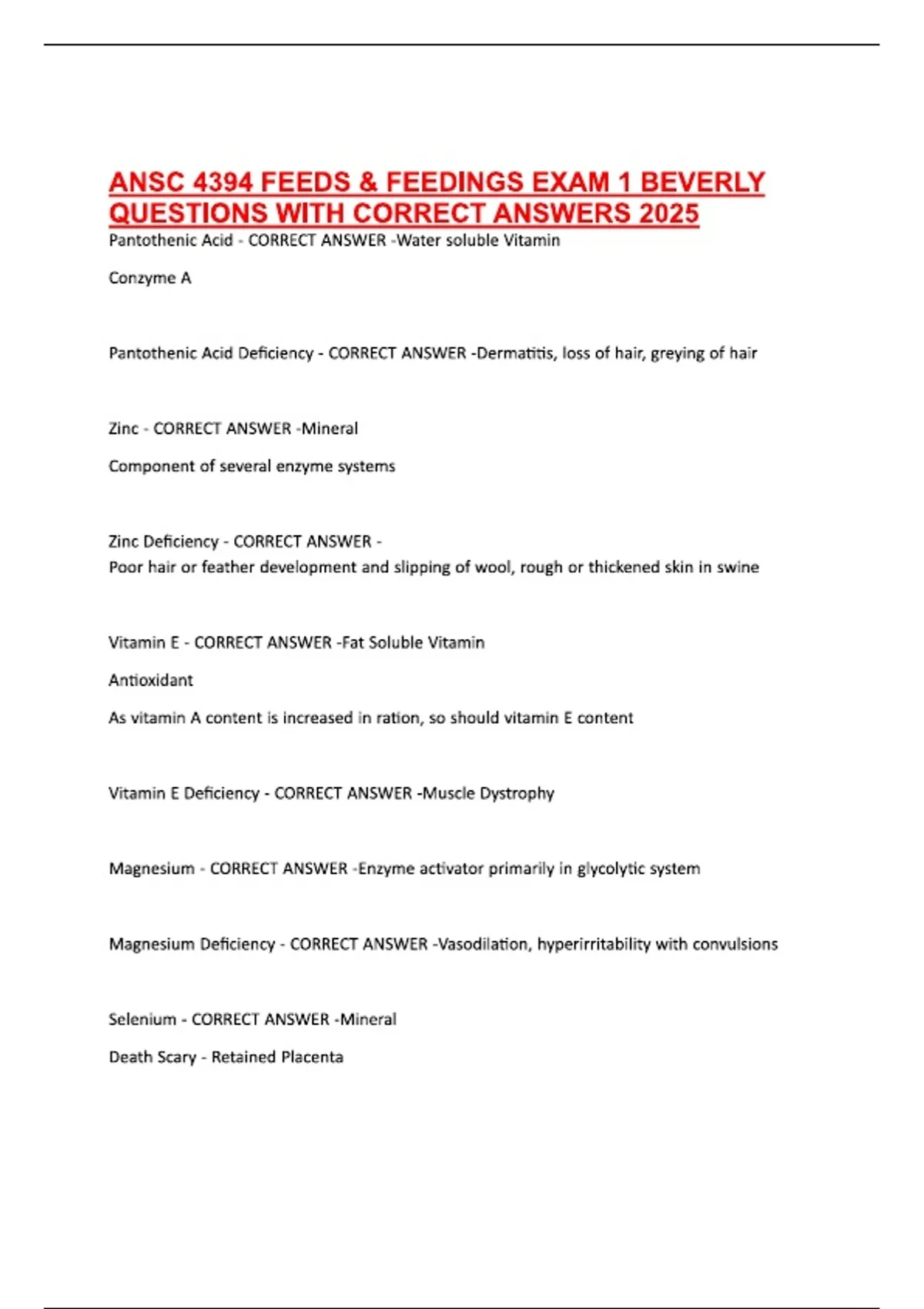ANSC 4394 FEEDS & FEEDINGS EXAM 1 BEVER...UESTIONS WITH CORRECT ANSWERS