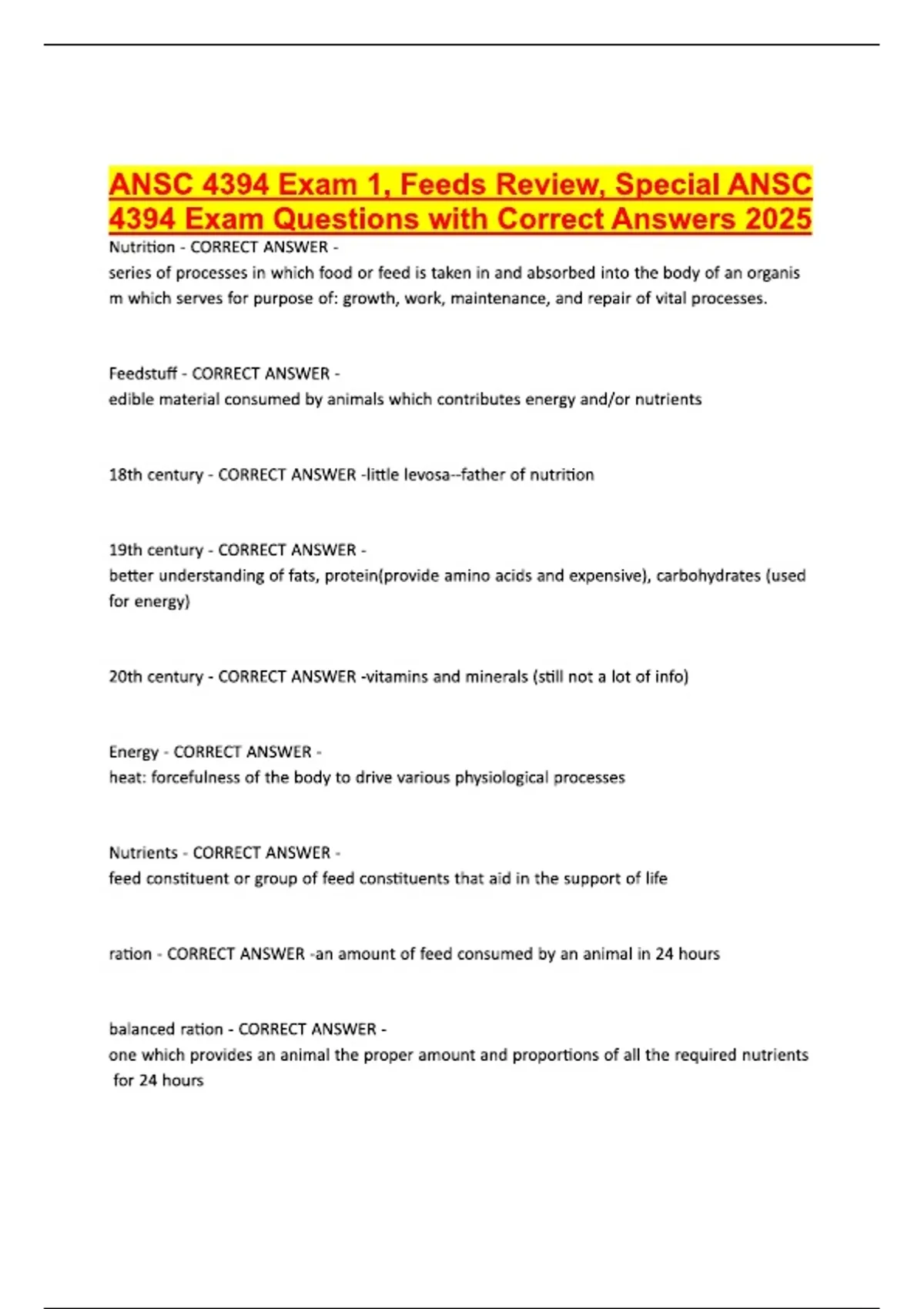 ANSC 4394 Exam 1, Feeds Review, Special...Questions with Correct Answers 2026