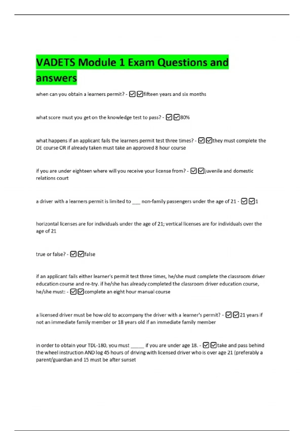 VADETS Module 1 Exam Questions and answers when can you obtain a learners permit? - fifteen years and six months what score must you get on the knowledge test to pass? - 80% what happens if an applicant fails the learners permit test three times? - they must complete the DE course OR if already taken must take an approved 8 hour course