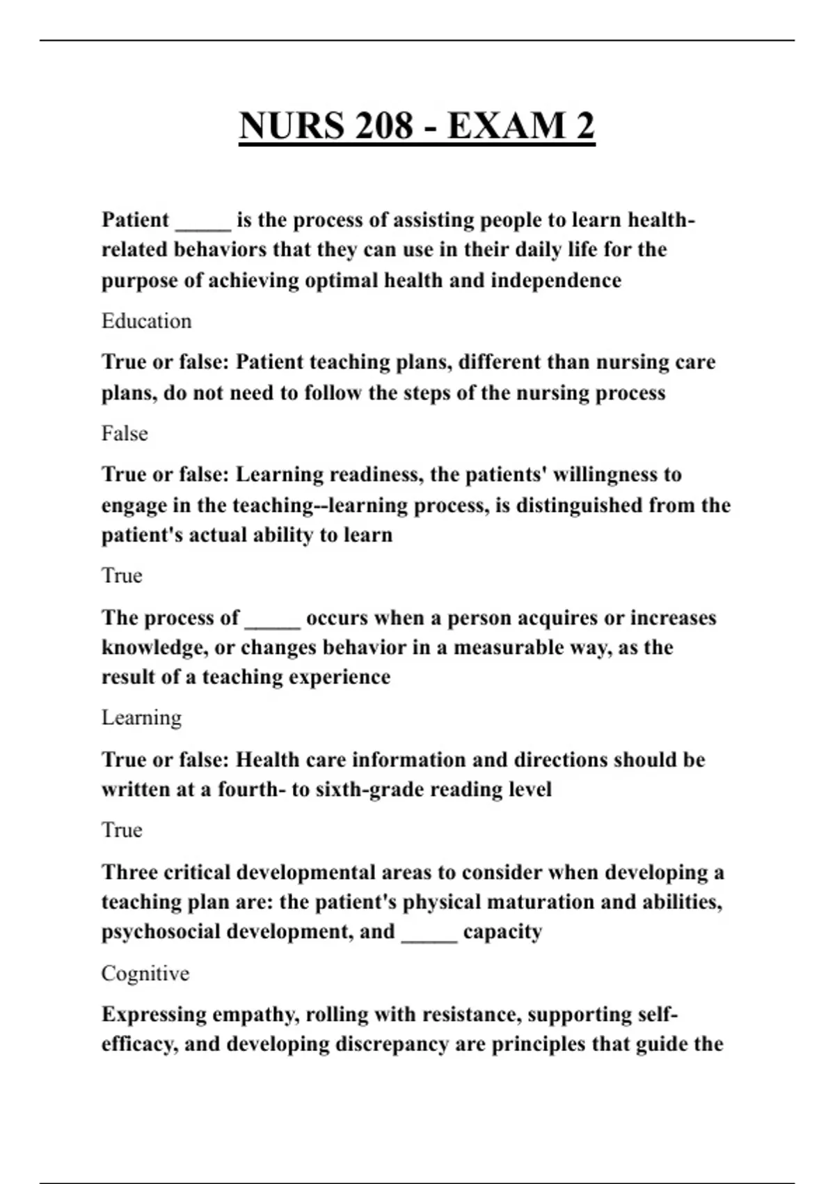 NURS 208 - EXAM 2