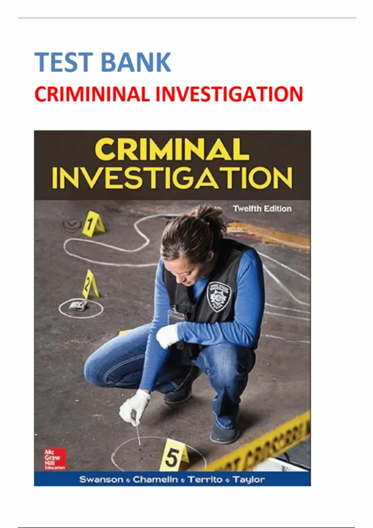 Test Bank for Criminal Investigation 12th Edition by Charles Swanson, Neil Chamelin and Leonard Territo| 9781259867941| All Chapters| LATEST UPDATED VERSION