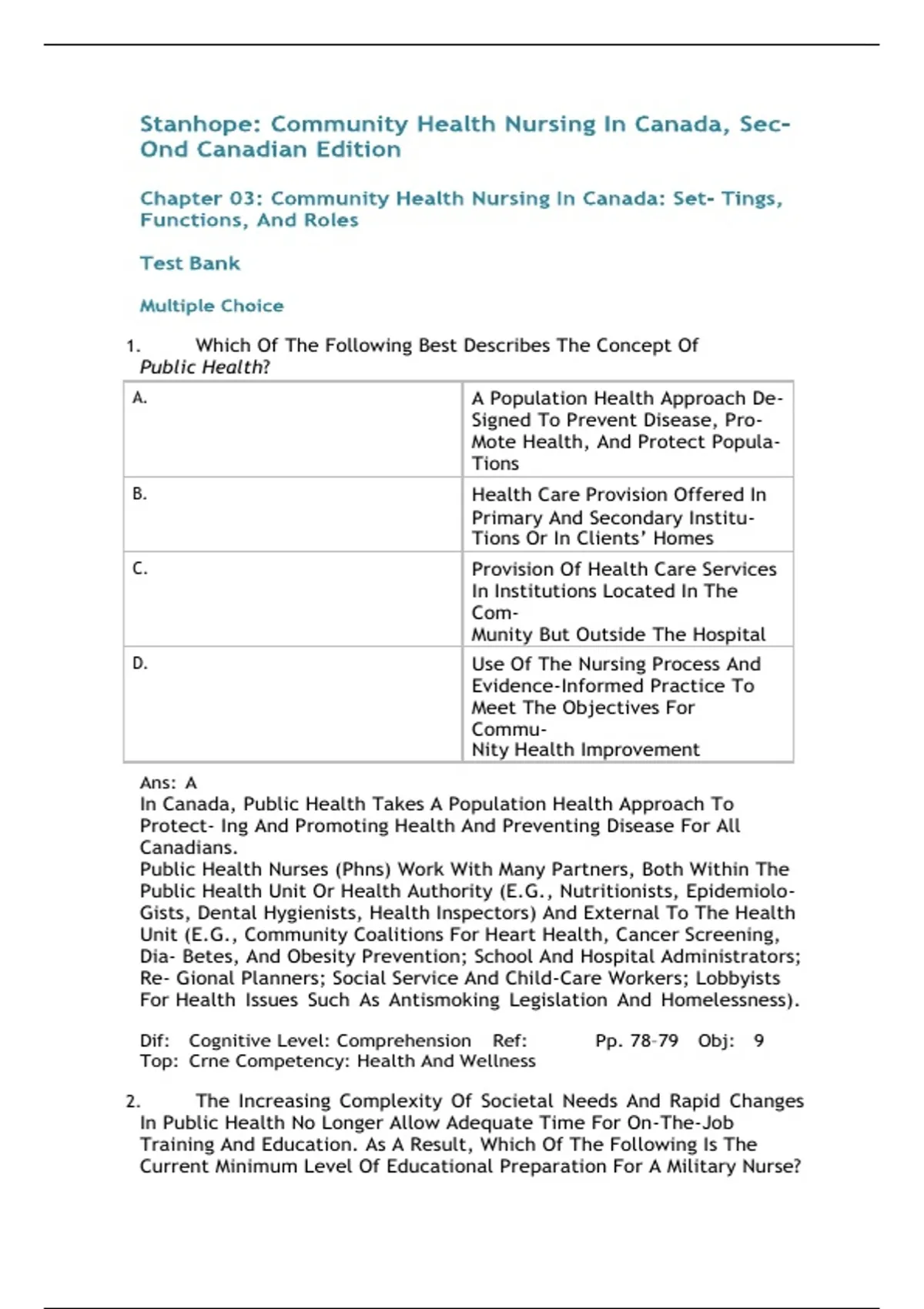 Stanhope: Community Health Nursing In Canada