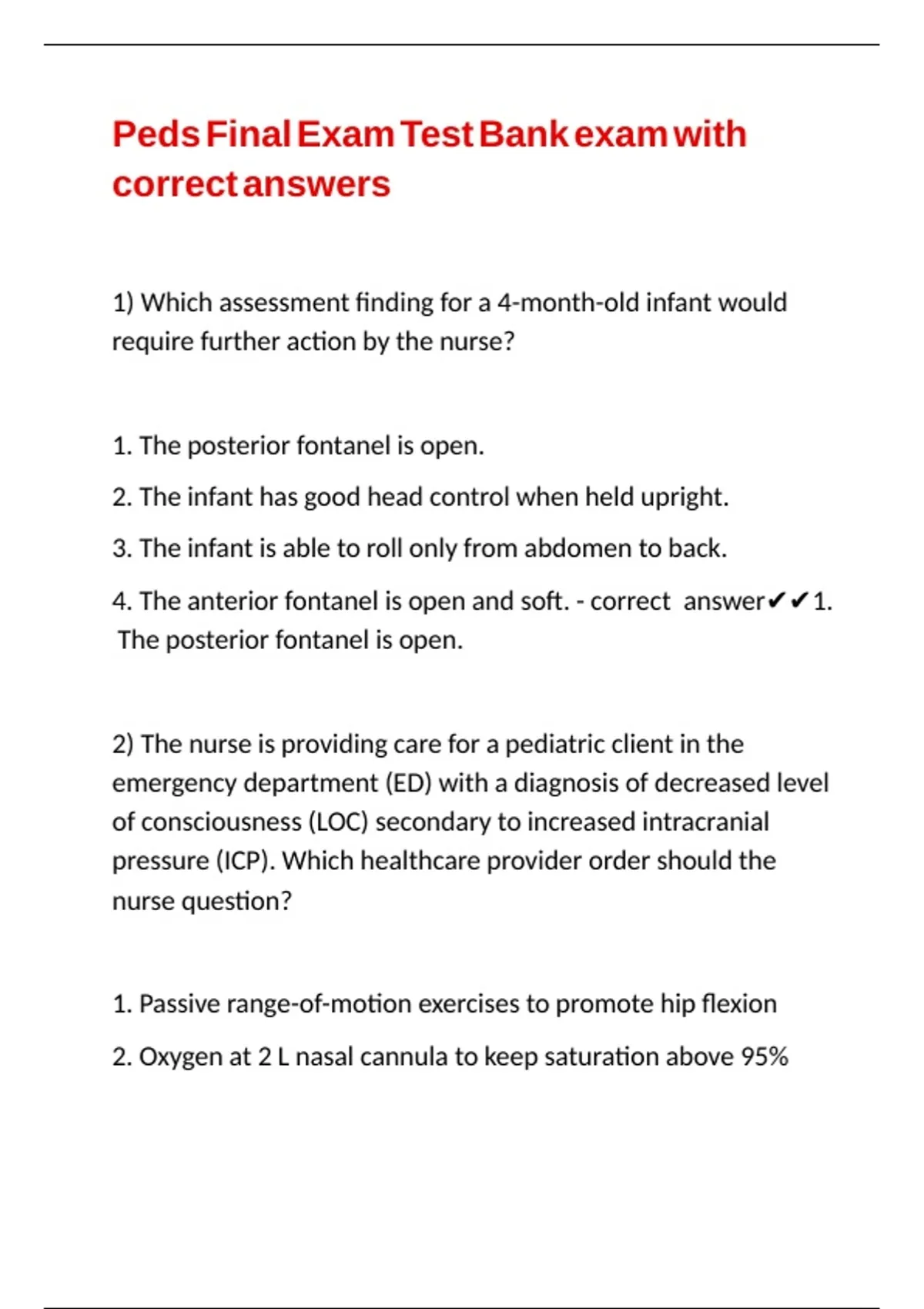 Peds Final Exam Test Bank exam with correct answers