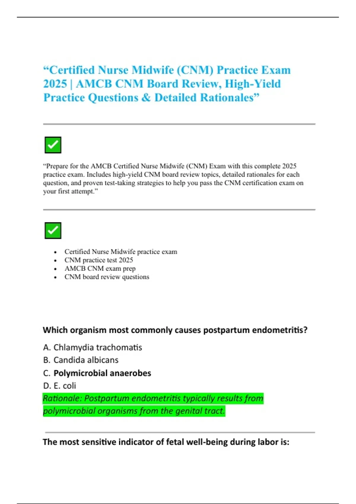 “Certified Nurse Midwife (CNM) Practice Exam 2025 | AMCB CNM Board Review, High-Yield Practice Questions & Detailed Rationales”