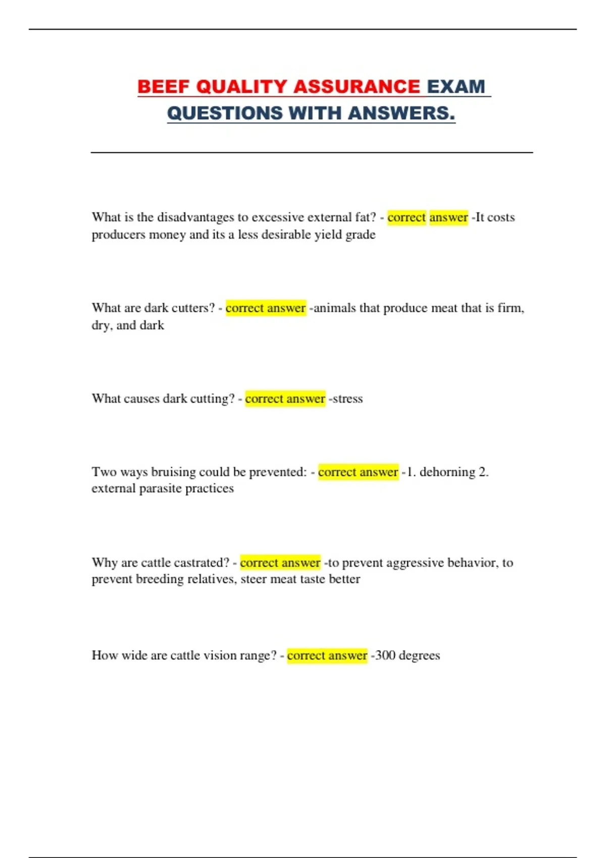 Why are cattle castrated? - correct answer -to prevent aggressive behavior, to