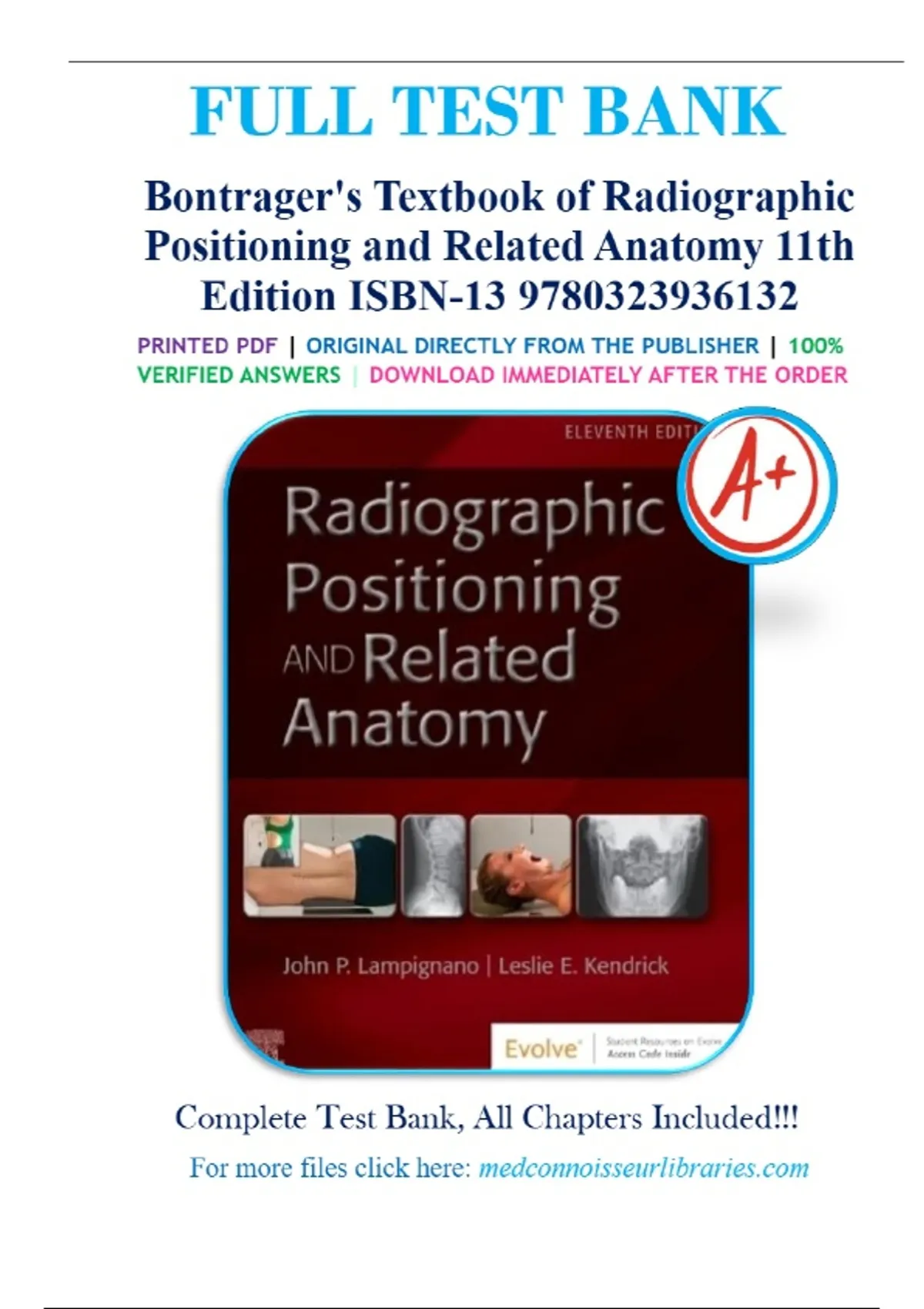 Test bank for Textbook of Radiographic Positioning and Related Anatomy 11th Edition by John Lampignano & Leslie E. Kendrick ISBN 9780323936132 | Complete Guide A+