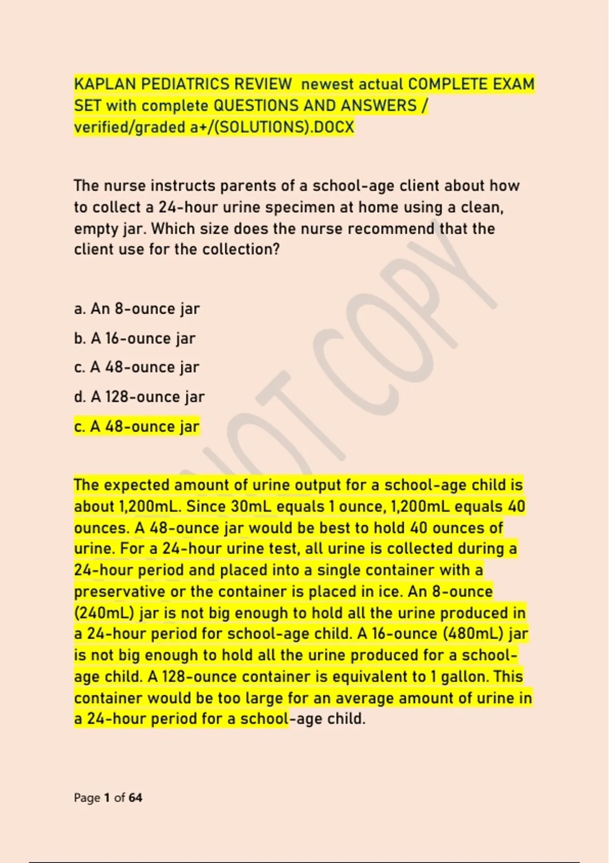 KAPLAN PEDIATRICS REVIEW newest actual COMPLETE EXAM SET with complete QUESTIONS AND ANSWERS / verified/graded a+/(SOLUTIONS).DOCX