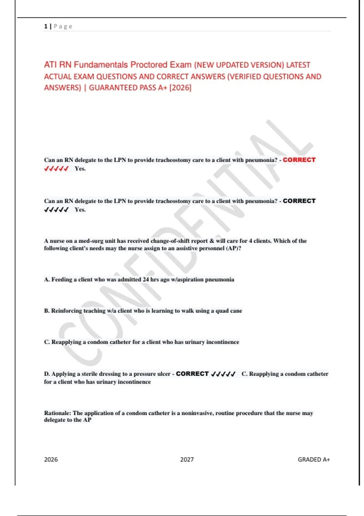 ATI RN Fundamentals Proctored Exam (NEW UPDATED VERSION) LATEST