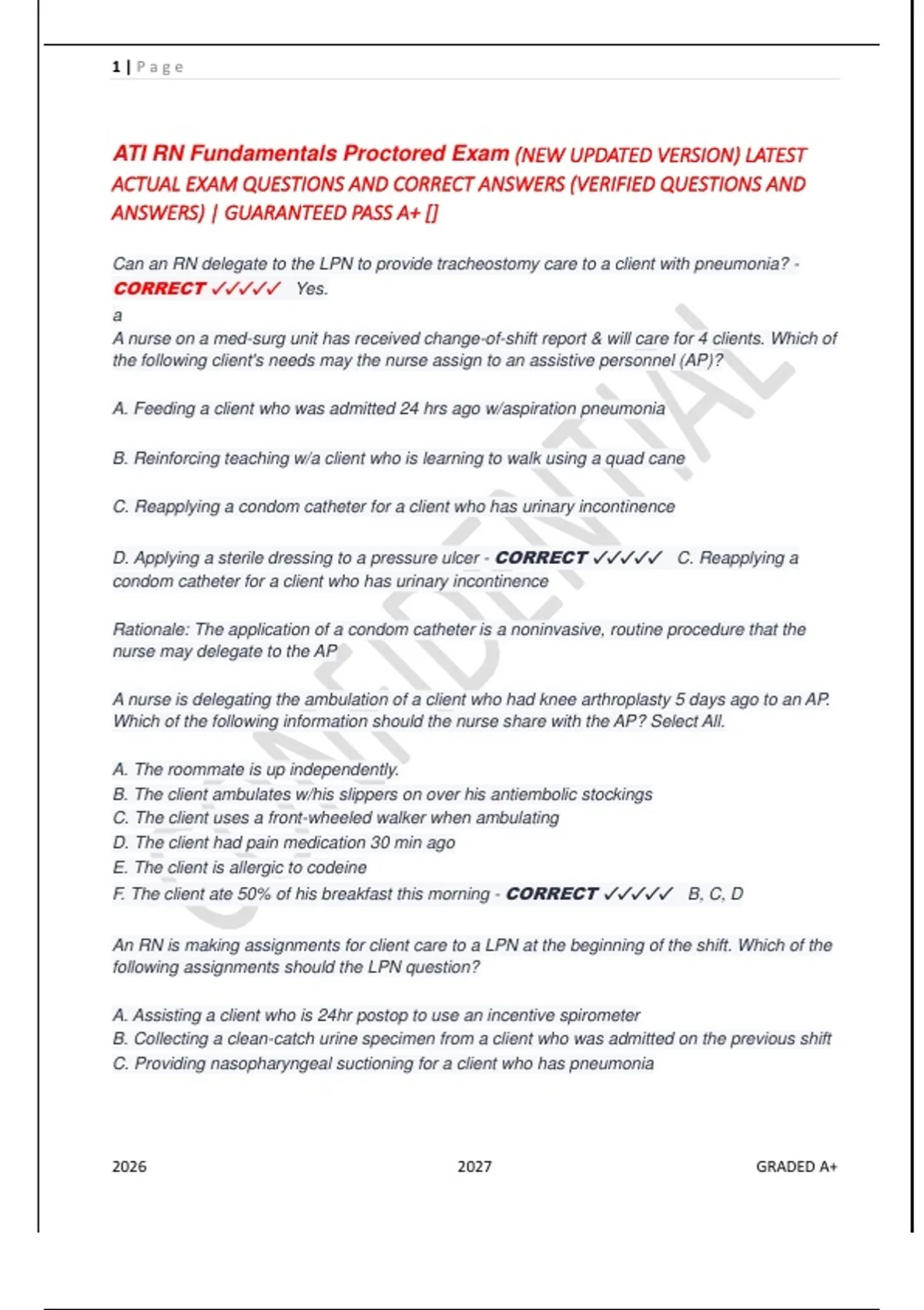 ATI RN Fundamentals Proctored Exam (NEW UPDATED VERSION) LATEST