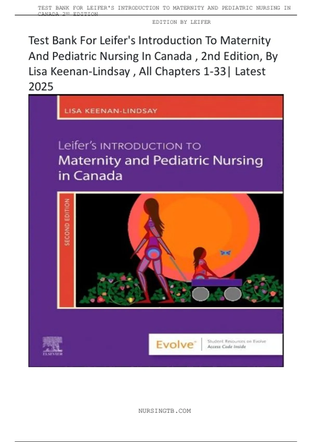 , TEST BANK FOR LEIFER'S INTRODUCTION TO MATERNITY AND PEDIATRIC NURSING IN