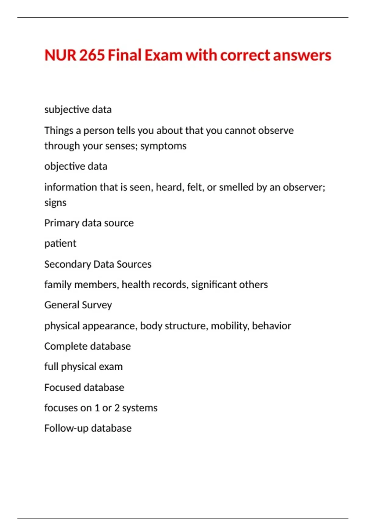 NUR 265 Final Exam with correct answers