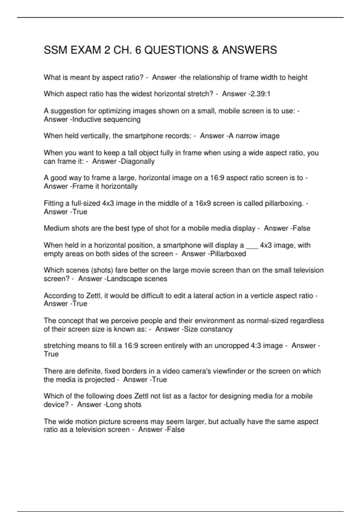 SSM EXAM 2 CH. 6 QUESTIONS & ANSWERS