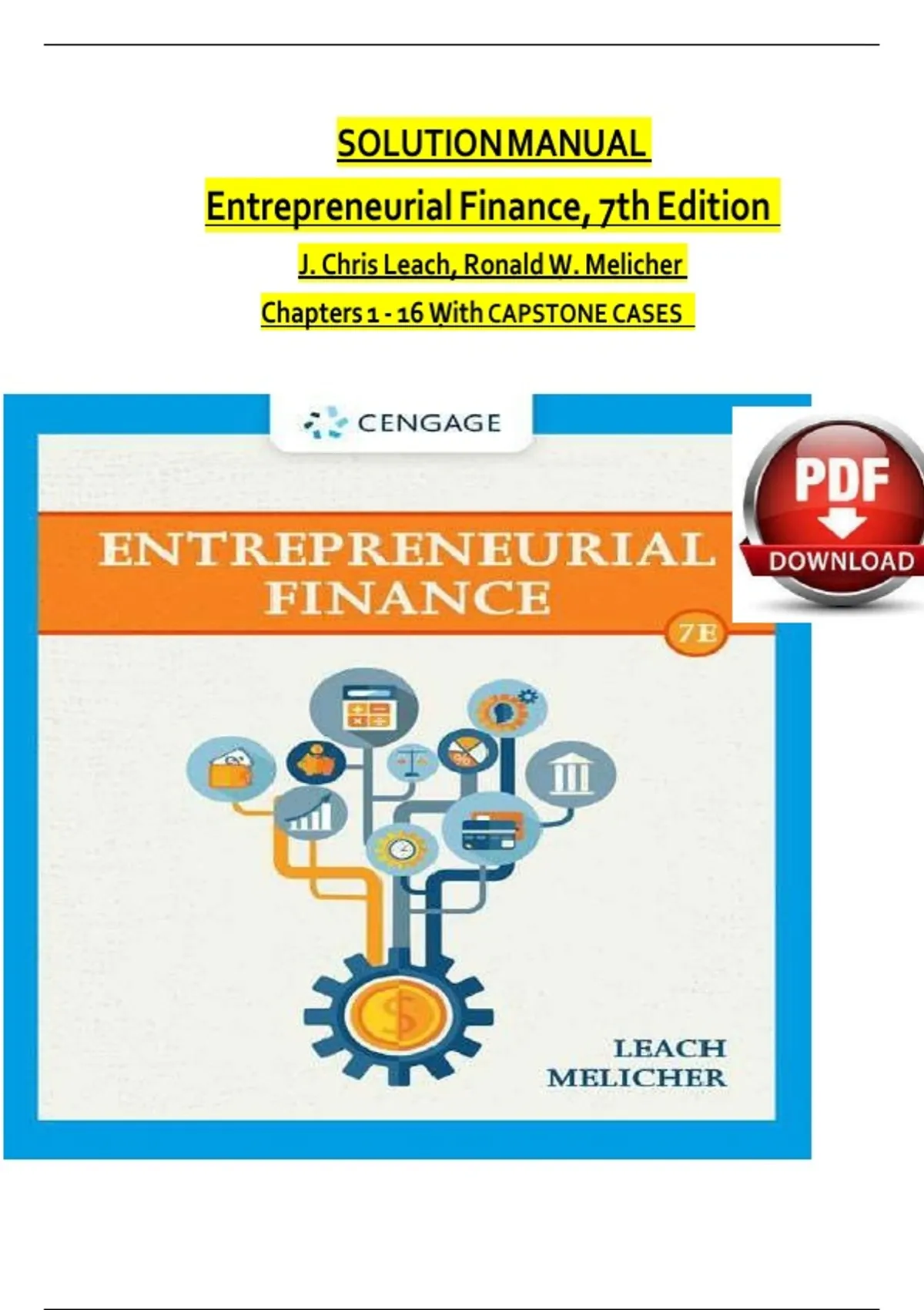 Complete Solution Manual for Entrepreneurial Finance (7th Edition) by J. Chris Leach & Ronald W. Melicher – Fully Worked Chapter Solutions for Startup Financial Planning and Venture Analysis