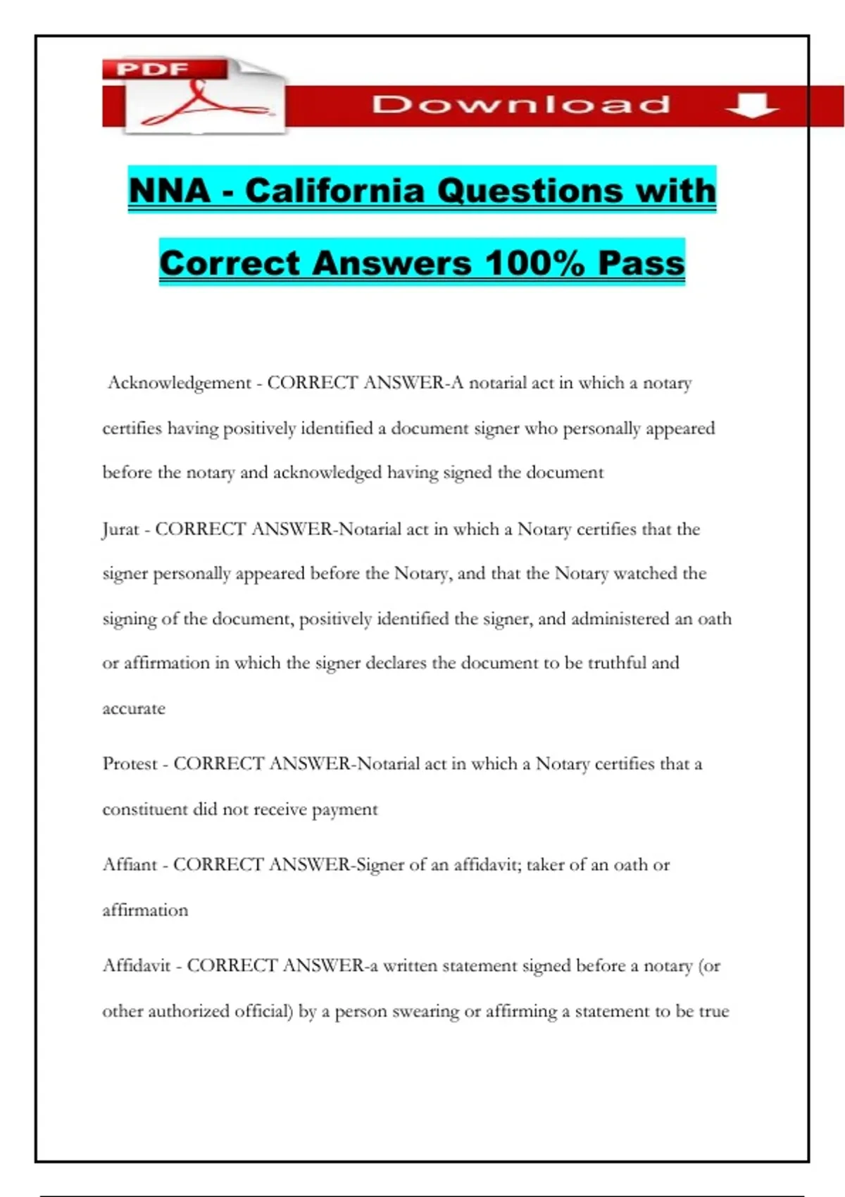 Jurat - CORRECT ANSWER-Notarial act in which a Notary certifies that the
