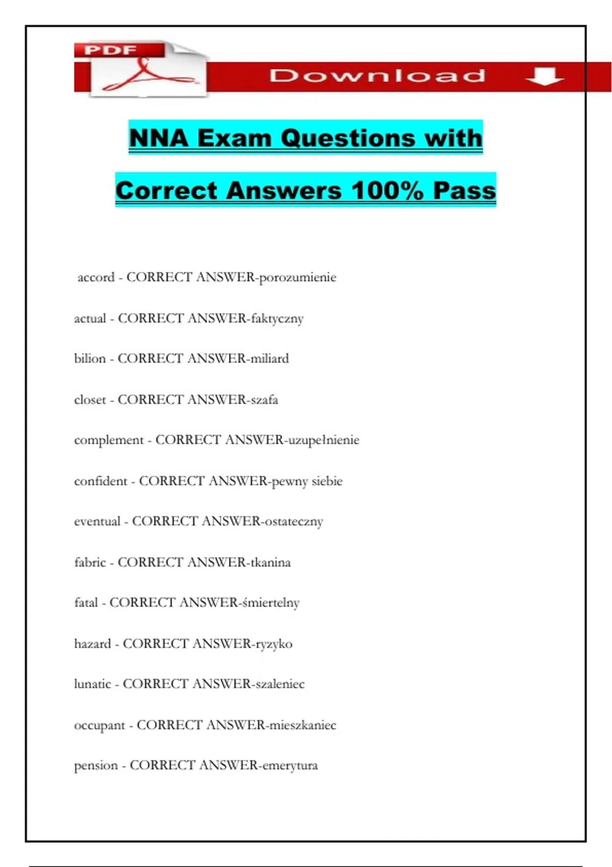 NNA Exam Questions with Correct Answers 100% Pass
