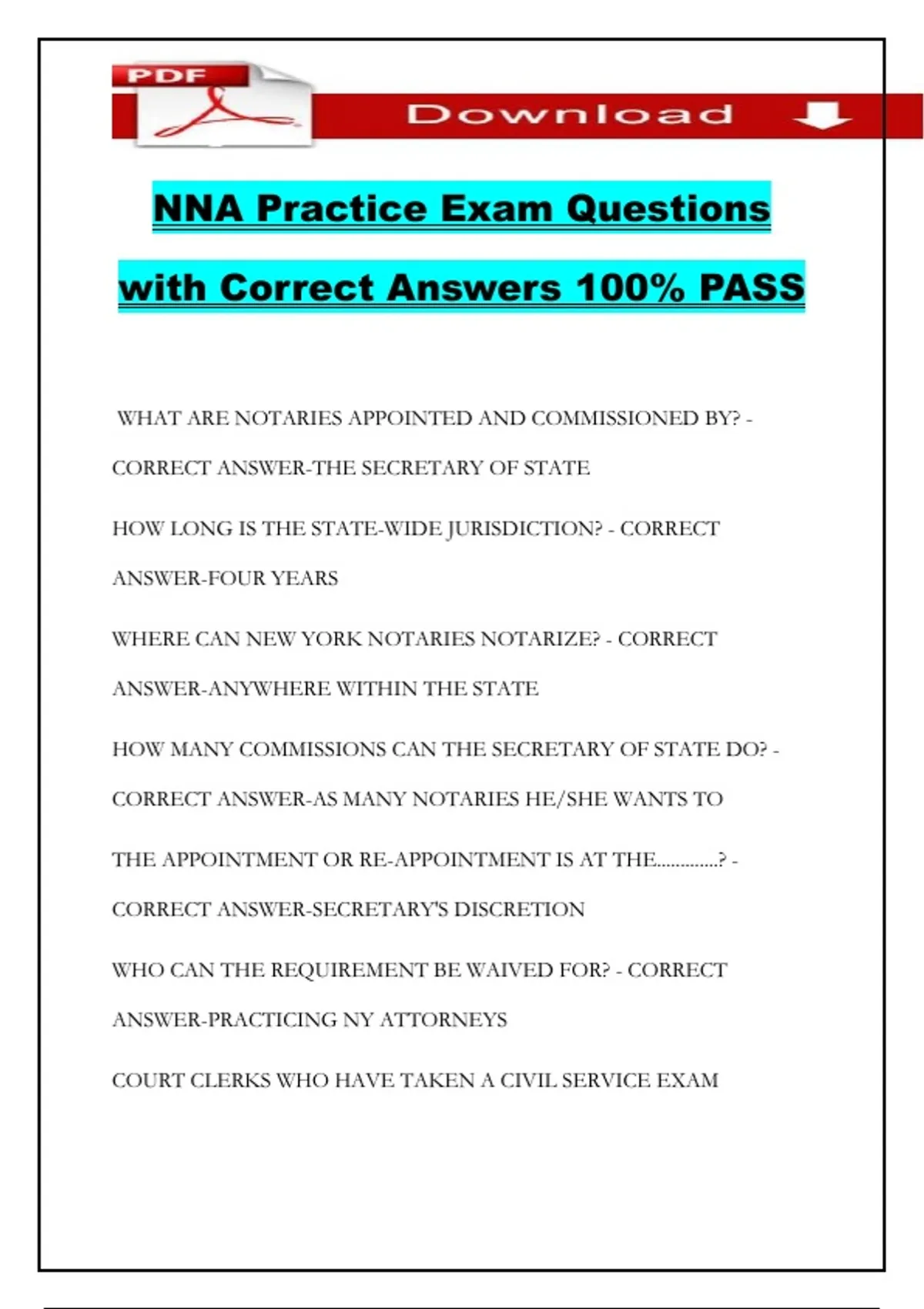 NNA Practice Exam Questions with Correct Answers 100% PASS