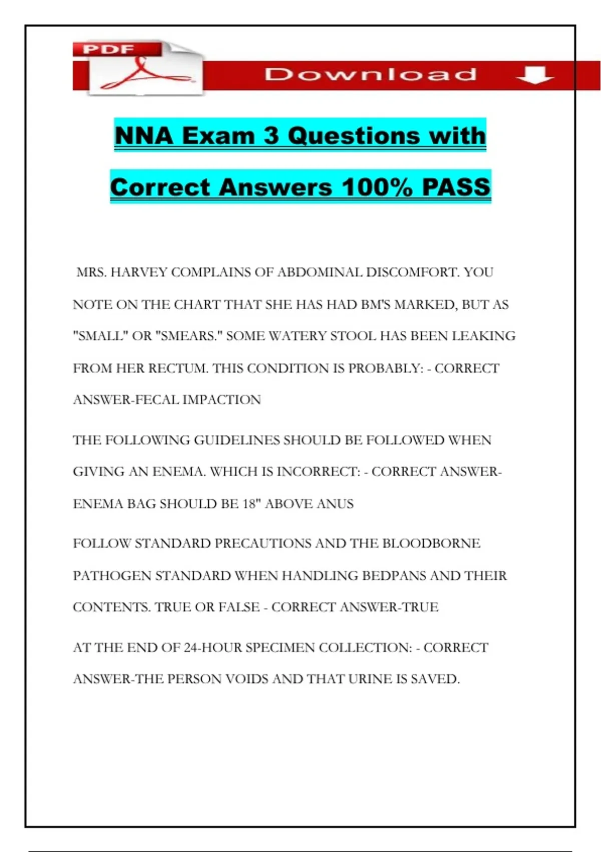 NNA Exam 3 Questions with Correct Answers 100% PASS