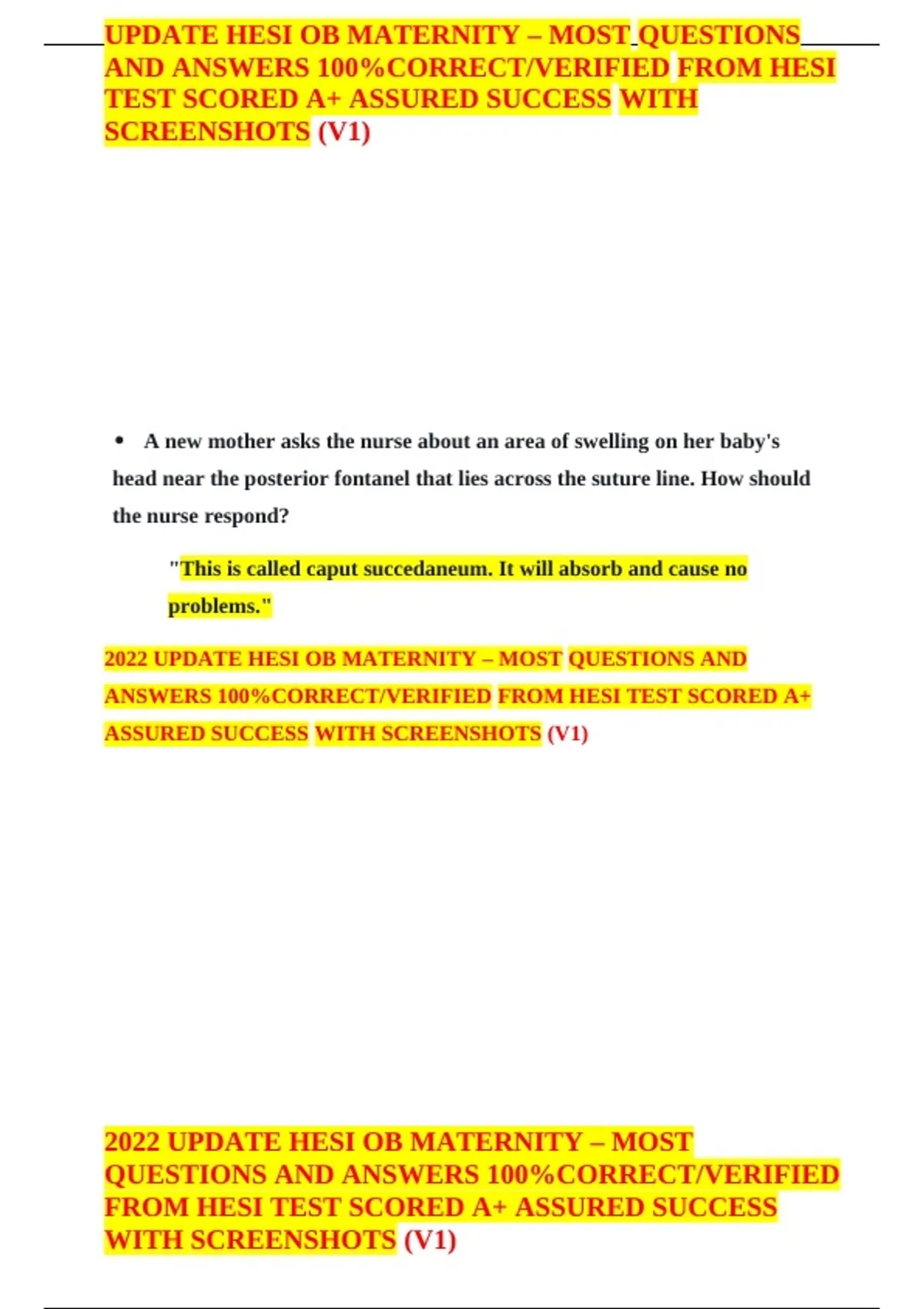 2022 UPDATE HESI OB MATERNITY – MOST QUESTIONS AND