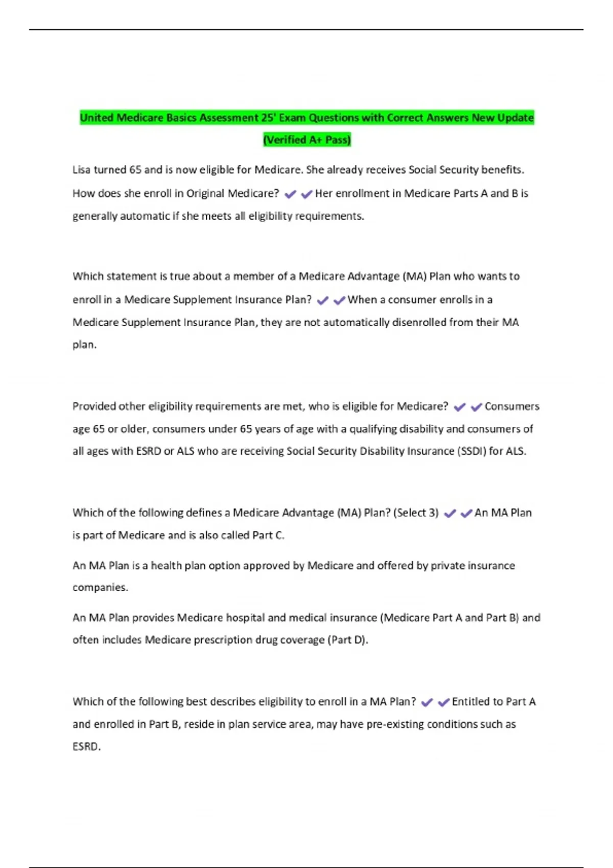 United Medicare Basics Assessment 25' Exam Questions with Correct Answers New Update (Verified A+ Pass)