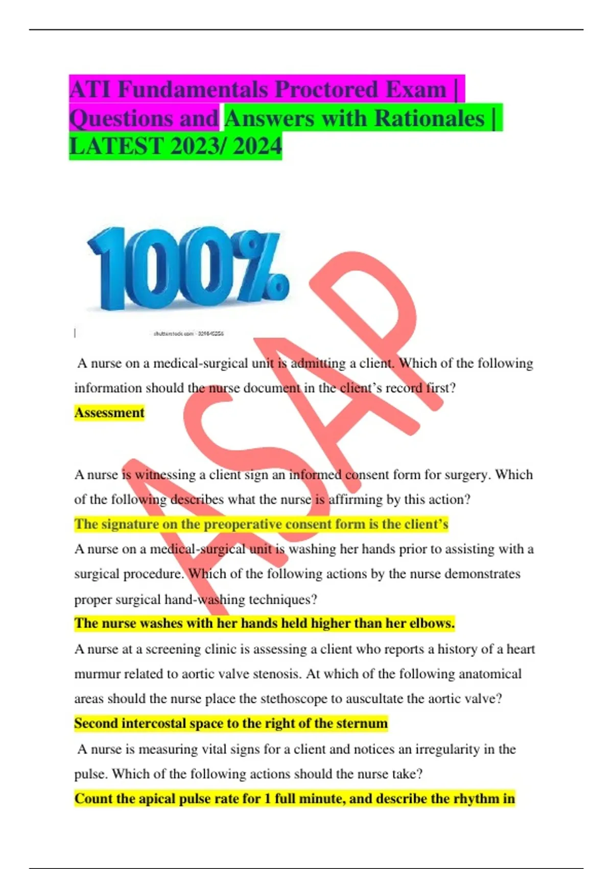 COMPREHENSIVE ATI EXAM(A BEST DOCUMENT