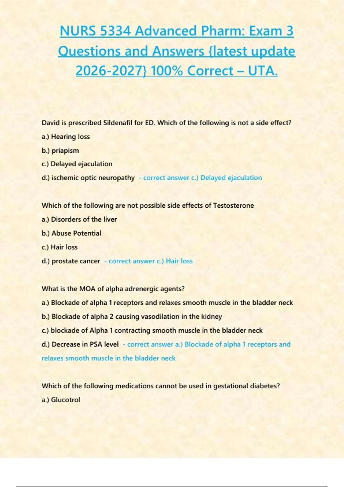 , NURS 5334 Advanced Pharm: Exam 3