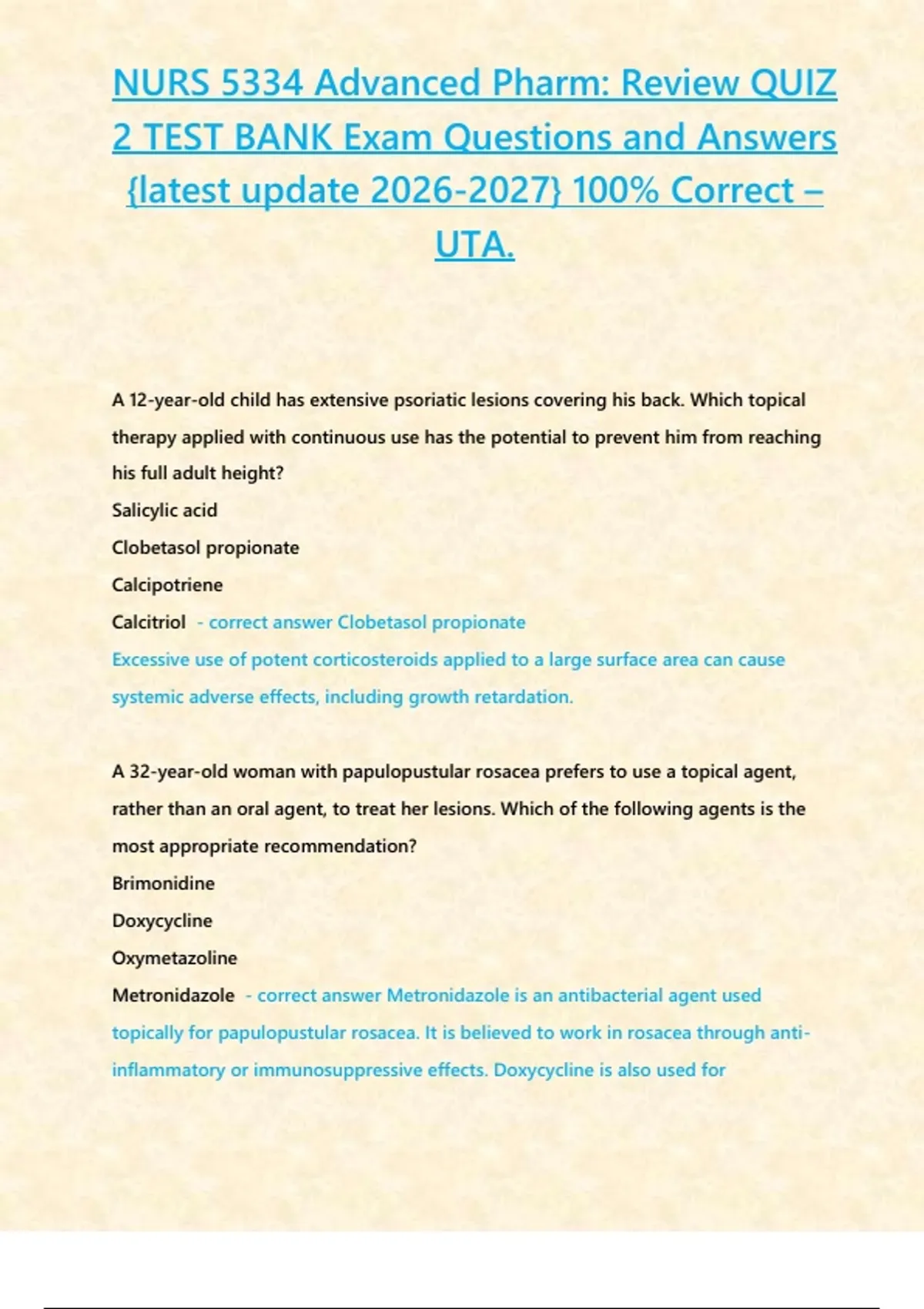 Calcitriol - correct answer Clobetasol propionate