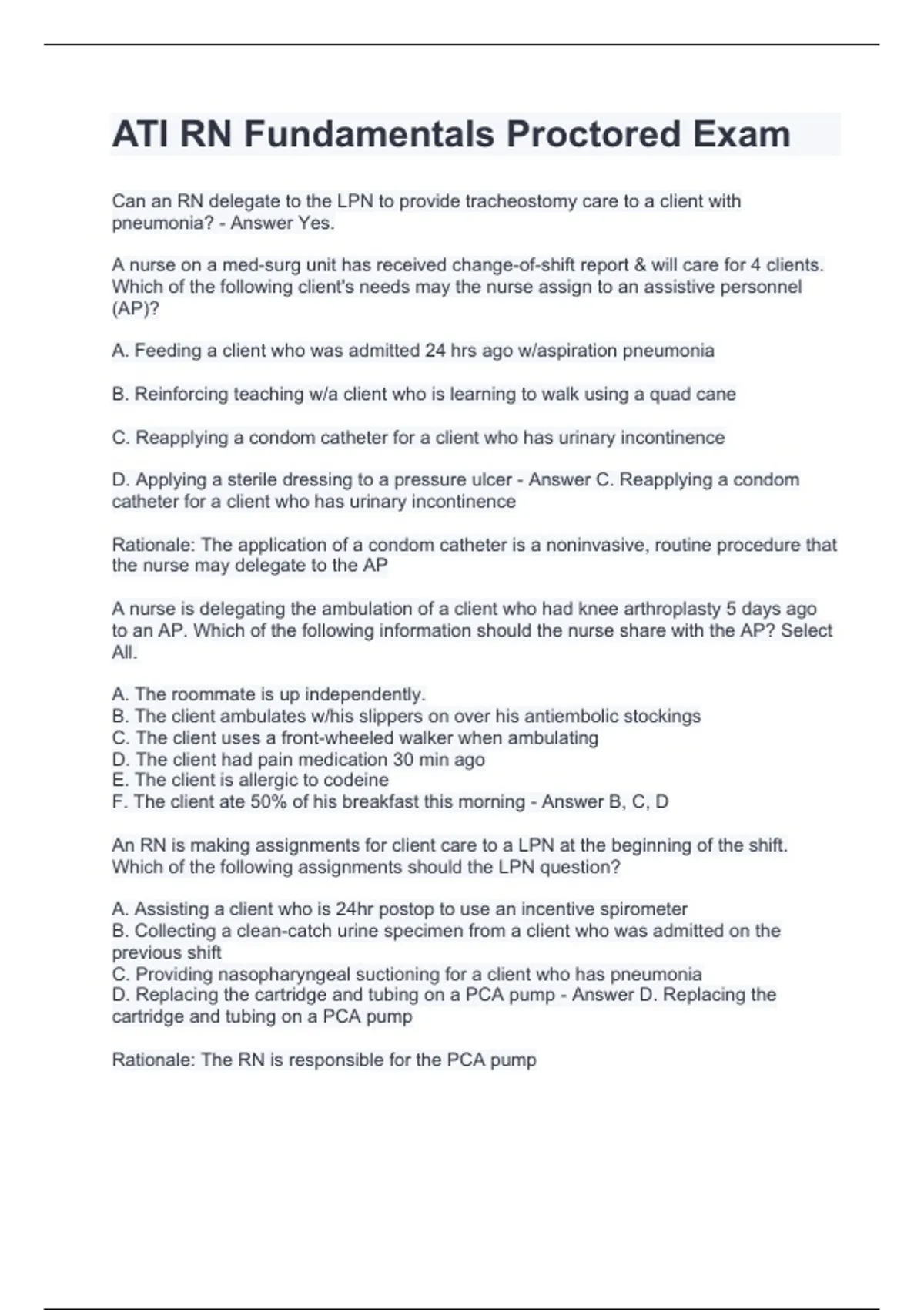 Which of the following assignments should the LPN question?