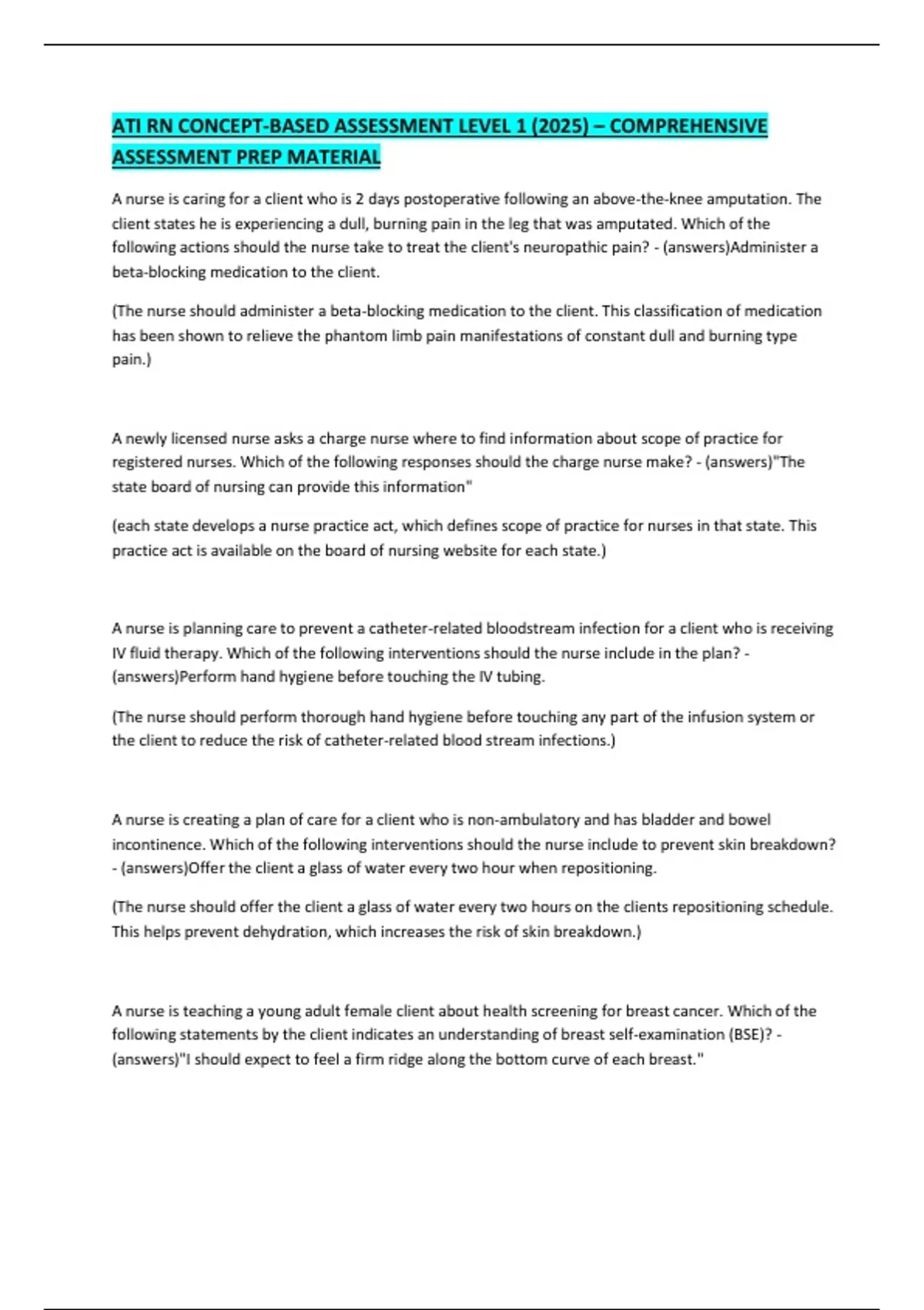 ATI RN CONCEPT-BASED ASSESSMENT LEVEL 1 (2025) – COMPREHENSIVE ASSESSMENT PREP MATERIAL