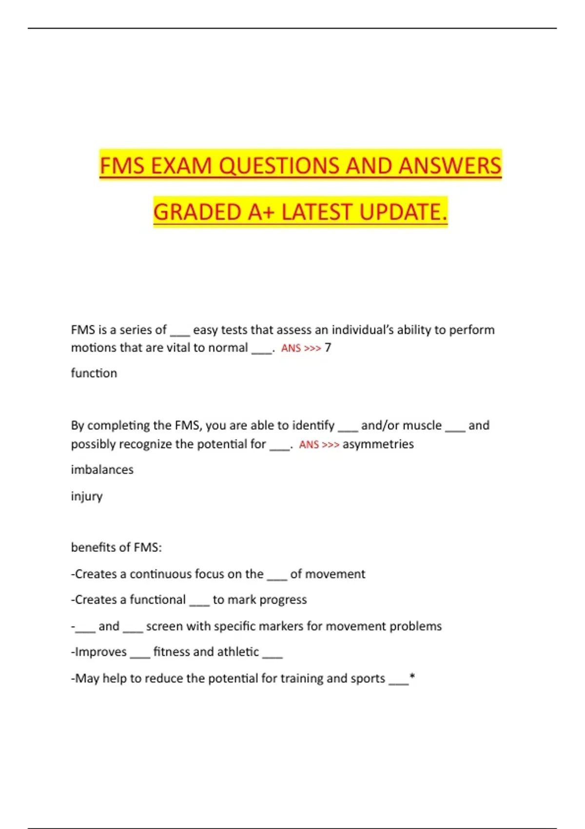 benefits of FMS: